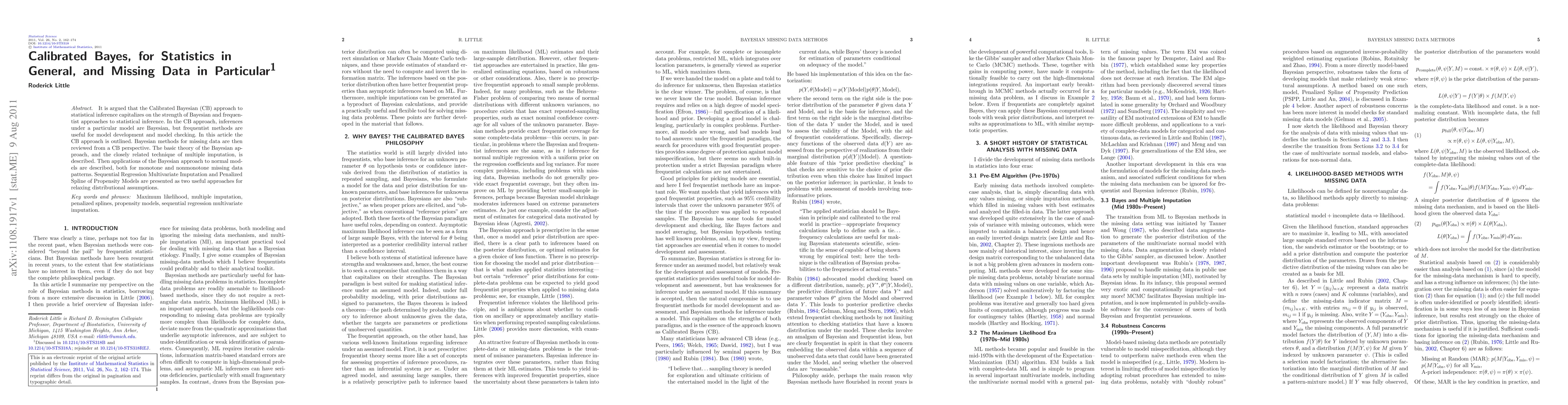 It is argued that the Calibrated Bayesian (CB) approach to statistical inference capitalizes on the strength of Bayesian and frequentist approaches to statistical inference. In the CB approach, inferences under a particular model are Bayesian, but frequentist methods are useful for model development and model checking. In this article the CB approach is outlined. Bayesian methods for missing data are then reviewed from a CB perspective. The basic theory of the Bayesian approach, and the closely related technique of multiple imputation, is described. Then applications of the Bayesian approach to normal models are described, both for monotone and nonmonotone missing data patterns. Sequential Regression Multivariate Imputation and Penalized Spline of Propensity Models are presented as two useful approaches for relaxing distributional assumptions.