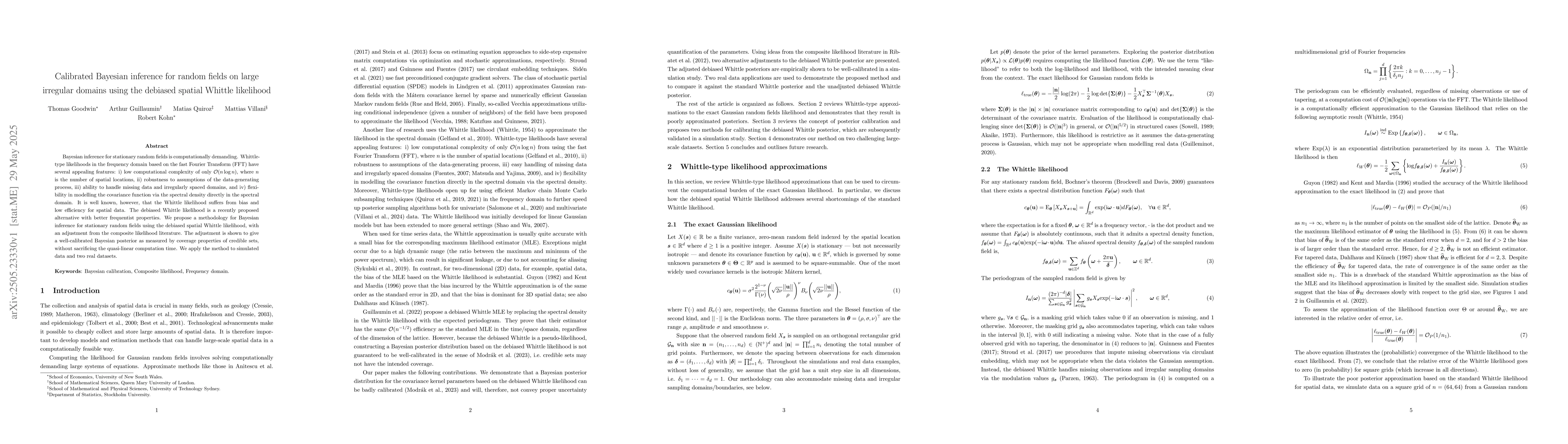 The paper proposes Bayesian inference for stationary random fields using the debiased spatial Whittle likelihood, incorporating an adjustment from the composite likelihood literature.