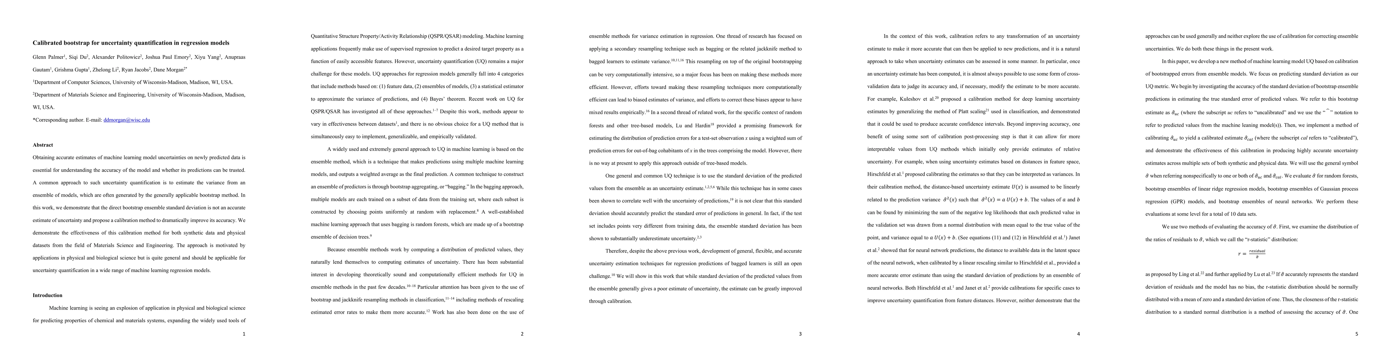 This paper proposes a calibrated bootstrap method to improve the accuracy of uncertainty estimates in regression models, showing that the direct bootstrap ensemble standard deviation is often inaccurate. The calibrated approach is demonstrated to be effective on both synthetic and real-world datasets from Materials Science and Engineering.