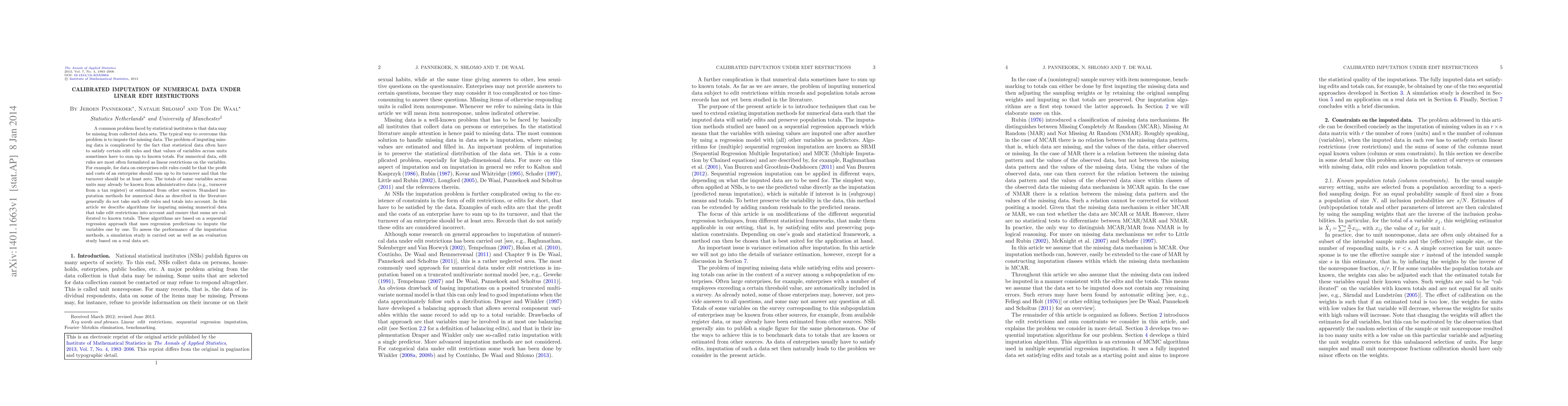 This paper presents algorithms for imputing missing numerical data that incorporate linear edit restrictions and ensure sums align with known totals. The proposed methods use a sequential regression approach and are evaluated through simulations and real data analysis.
