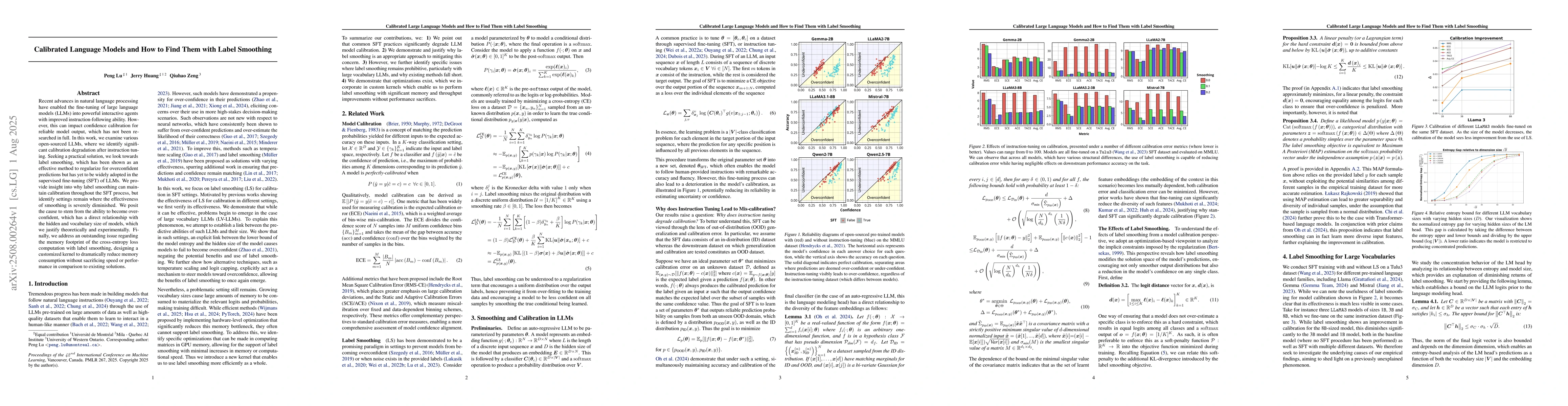 Recent advances in natural language processing (NLP) have opened up greater opportunities to enable fine-tuned large language models (LLMs) to behave as more powerful interactive agents through improved instruction-following ability. However, understanding how this impacts confidence calibration for reliable model output has not been researched in full. In this work, we examine various open-sourced LLMs, identifying significant calibration degradation after instruction tuning in each. Seeking a practical solution, we look towards label smoothing, which has been shown as an effective method to regularize for overconfident predictions but has yet to be widely adopted in the supervised fine-tuning (SFT) of LLMs. We first provide insight as to why label smoothing is sufficient to maintain calibration throughout the SFT process. However, settings remain where the effectiveness of smoothing is severely diminished, in particular the case of large vocabulary LLMs (LV-LLMs). We posit the cause to stem from the ability to become over-confident, which has a direct relationship with the hidden size and vocabulary size, and justify this theoretically and experimentally. Finally, we address an outstanding issue regarding the memory footprint of the cross-entropy loss computation in the label smoothed loss setting, designing a customized kernel to dramatically reduce memory consumption without sacrificing speed or performance in comparison to existing solutions for non-smoothed losses.