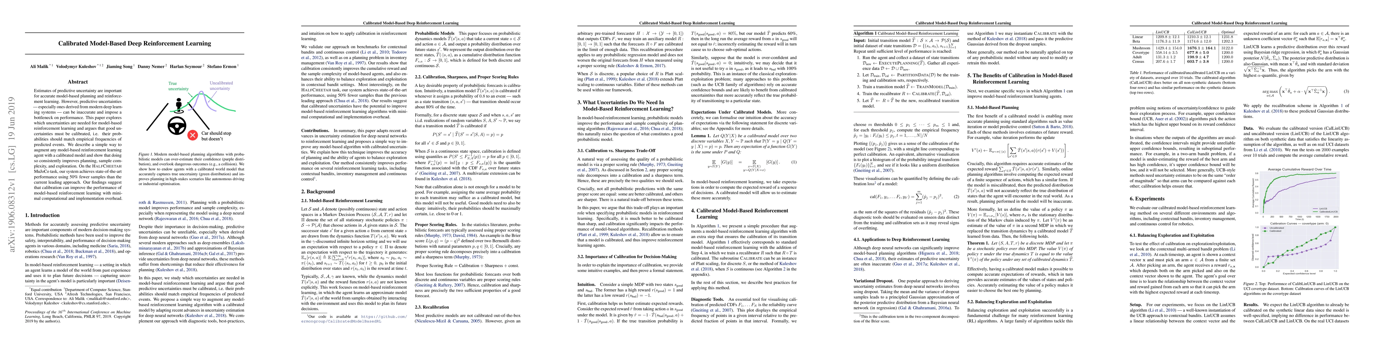 Estimates of predictive uncertainty are important for accurate model-based planning and reinforcement learning. However, predictive uncertainties---especially ones derived from modern deep learning systems---can be inaccurate and impose a bottleneck on performance. This paper explores which uncertainties are needed for model-based reinforcement learning and argues that good uncertainties must be calibrated, i.e. their probabilities should match empirical frequencies of predicted events. We describe a simple way to augment any model-based reinforcement learning agent with a calibrated model and show that doing so consistently improves planning, sample complexity, and exploration. On the \textsc{HalfCheetah} MuJoCo task, our system achieves state-of-the-art performance using 50\% fewer samples than the current leading approach. Our findings suggest that calibration can improve the performance of model-based reinforcement learning with minimal computational and implementation overhead.