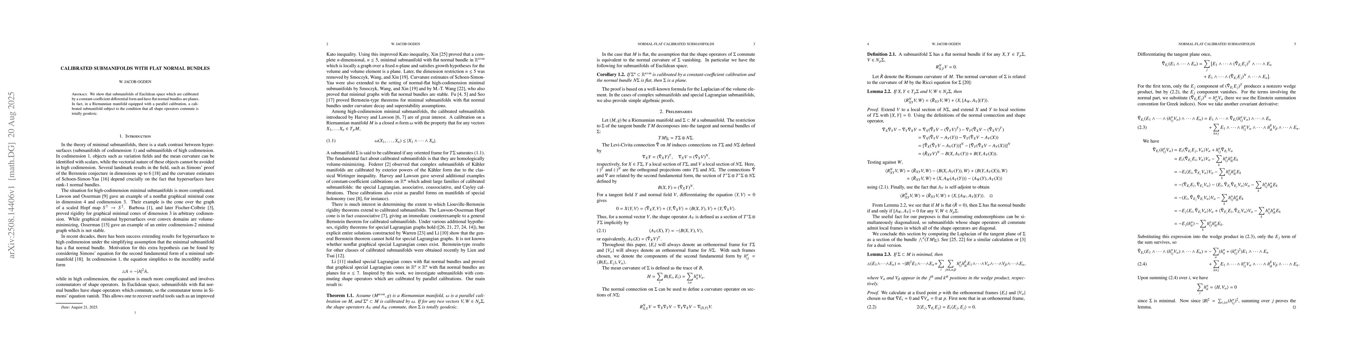 The paper establishes a connection between the flatness of normal bundles and the commutativity of shape operators, leading to rigidity results for calibrated submanifolds.