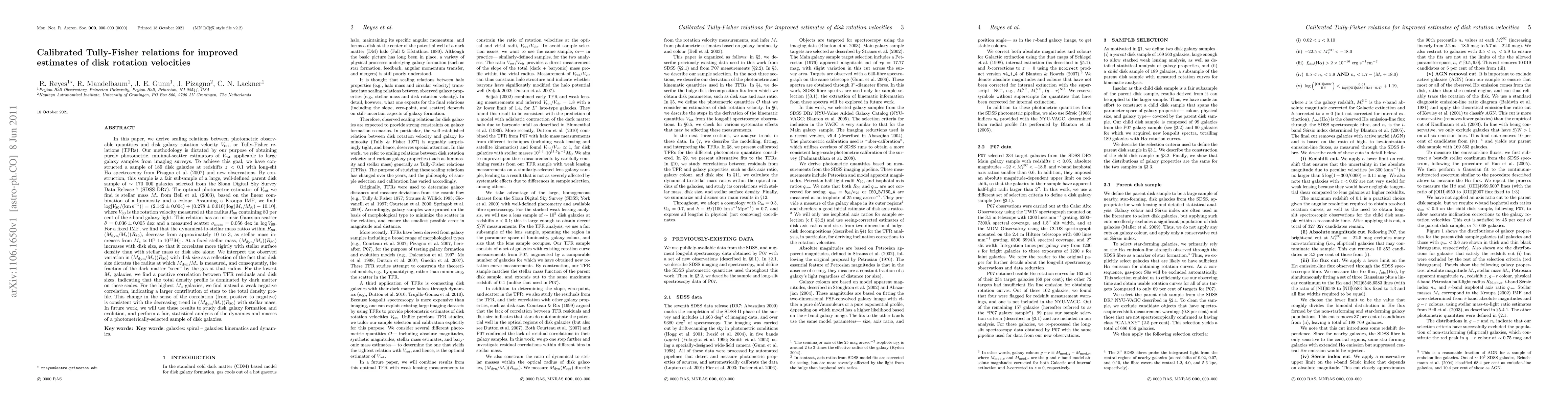 In this paper, we derive scaling relations between photometric observable quantities and disk galaxy rotation velocity V_rot, or Tully-Fisher relations (TFRs). Our methodology is dictated by our purpose of obtaining purely photometric, minimal-scatter estimators of V_rot applicable to large galaxy samples from imaging surveys. To achieve this goal, we have constructed a sample of 189 disk galaxies at redshifts z<0.1 with long-slit H-alpha spectroscopy from Pizagno et al. (2007) and new observations. By construction, this sample is a fair subsample of a large, well-defined parent disk sample of ~170 000 galaxies selected from the Sloan Digital Sky Survey Data Release 7 (SDSS DR7). The optimal photometric estimator of V_rot we find is stellar mass M_* from Bell et al. (2003), based on the linear combination of a luminosity and a colour. Assuming a Kroupa IMF, we find: log [V_{80}/(km s^-1)] = (2.142 +/- 0.004)+(0.278 +/- 0.010)[log (M_*/M_sun)-10.10], where V_{80} is the rotation velocity measured at the radius R_{80} containing 80 per cent of the i-band galaxy light. This relation has an intrinsic Gaussian scatter of 0.036 +/- 0.005 dex and a measured scatter of 0.056 dex in log V_{80}. For a fixed IMF, we find that the dynamical-to-stellar mass ratios within R_{80}, (M_dyn/M_*)(R_{80}), decrease from approximately 10 to 3, as stellar mass increases from M_* ~ 10^9 to 10^{11} M_sun. At a fixed stellar mass, (M_dyn/M_*)(R_{80}) increases with disk size, so that it correlates more tightly with stellar surface density than with stellar mass or disk size alone. In future work, we will use these results to study disk galaxy formation and evolution, and perform a fair, statistical analysis of the dynamics and masses of a photometrically-selected sample of disk galaxies. [Abridged]