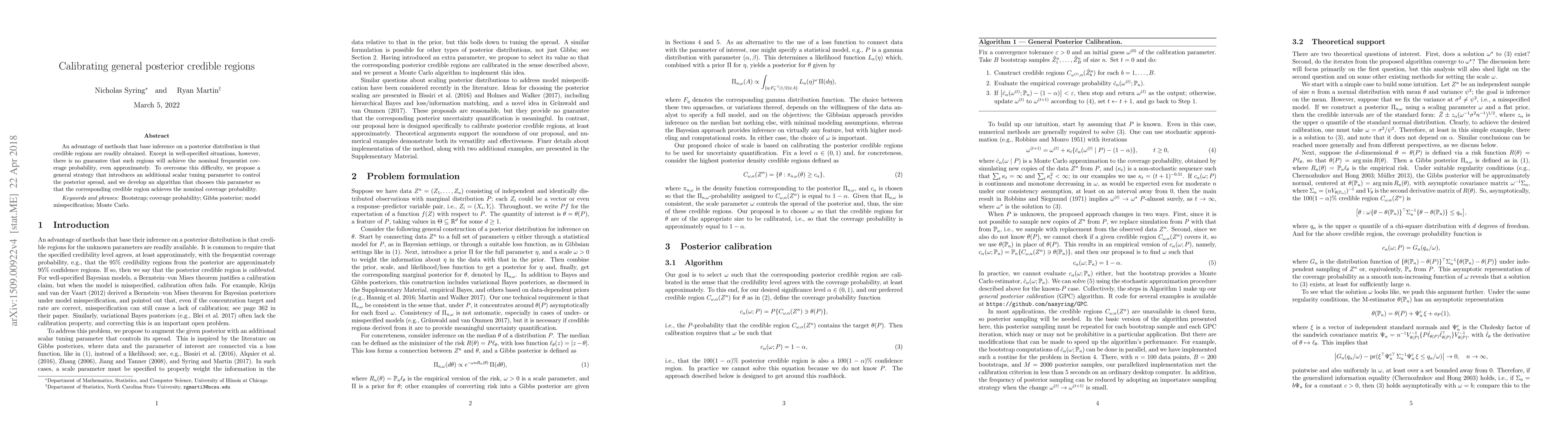 Researchers propose a new method to adjust posterior distributions for accurate coverage probability, ensuring credible regions meet nominal frequentist standards. Their approach introduces an additional parameter to control spread, enabling reliable inference in well-specified situations.