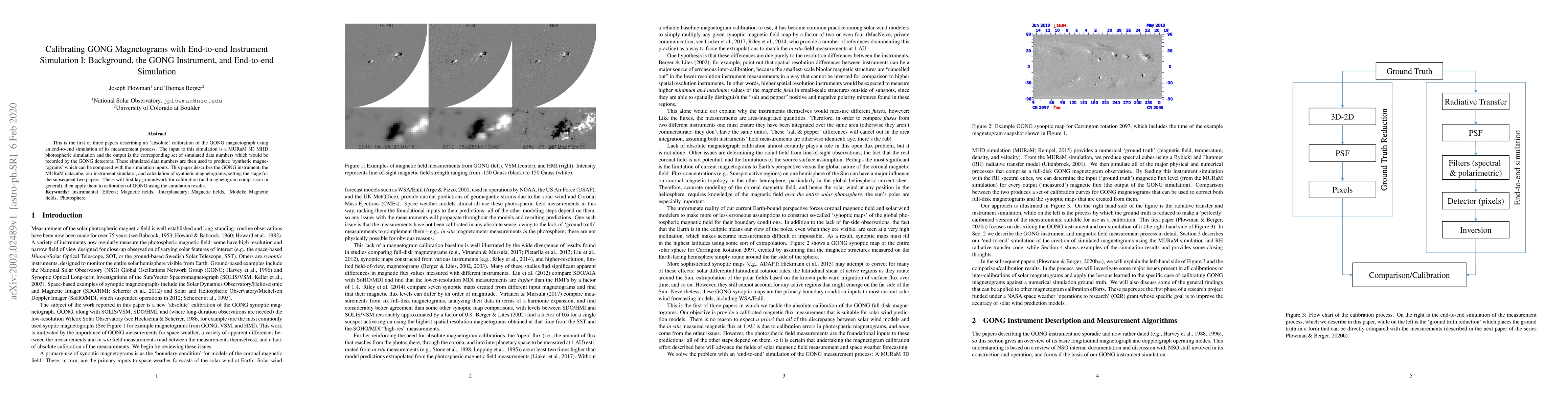 This paper introduces an 'absolute' calibration method for the GONG magnetograph using end-to-end simulation. It details the GONG instrument, MURaM datacube, and instrument simulator, preparing the ground for subsequent papers focusing on calibration and comparison of magnetograms.