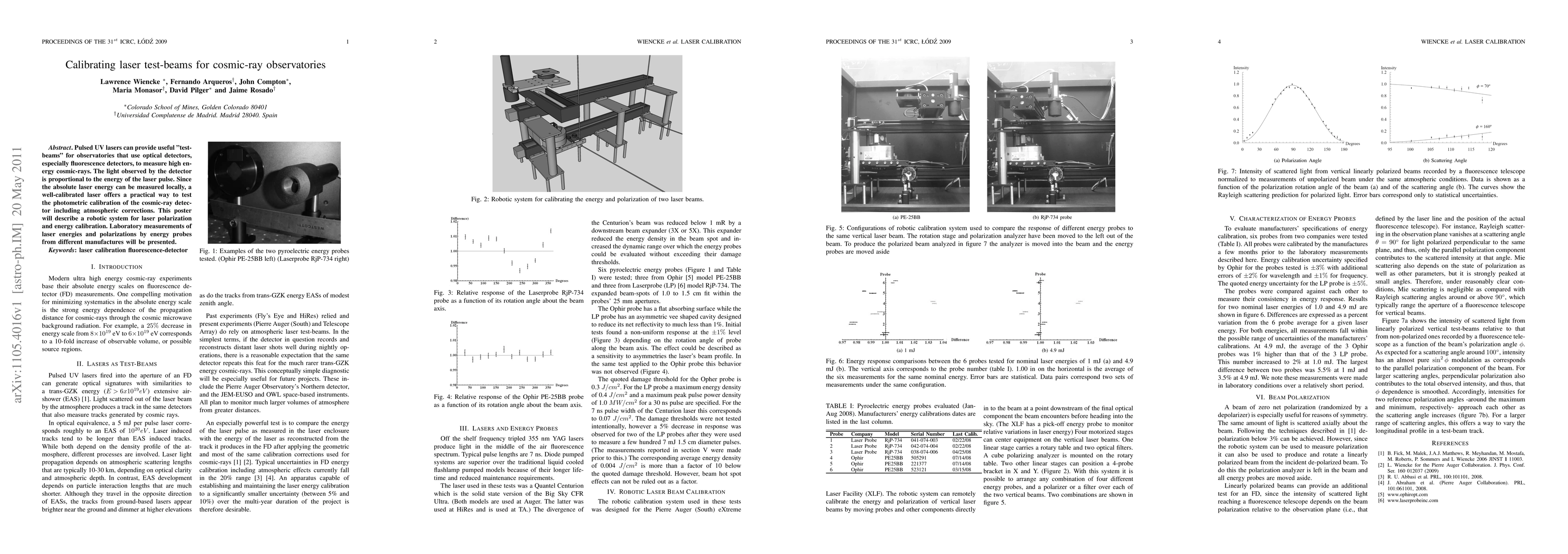 Pulsed UV lasers can provide useful "testbeams" for observatories that use optical detectors, especially fluorescence detectors, to measure high energy cosmic-rays. The light observed by the detector is proportional to the energy of the laser pulse. Since the absolute laser energy can be measured locally, a well-calibrated laser offers a practical way to test the photometric calibration of the cosmic-ray detector including atmospheric corrections. This poster will describe a robotic system for laser polarization and energy calibration. Laboratory measurements of laser energies and polarizations by energy probes from different manufactures will be presented