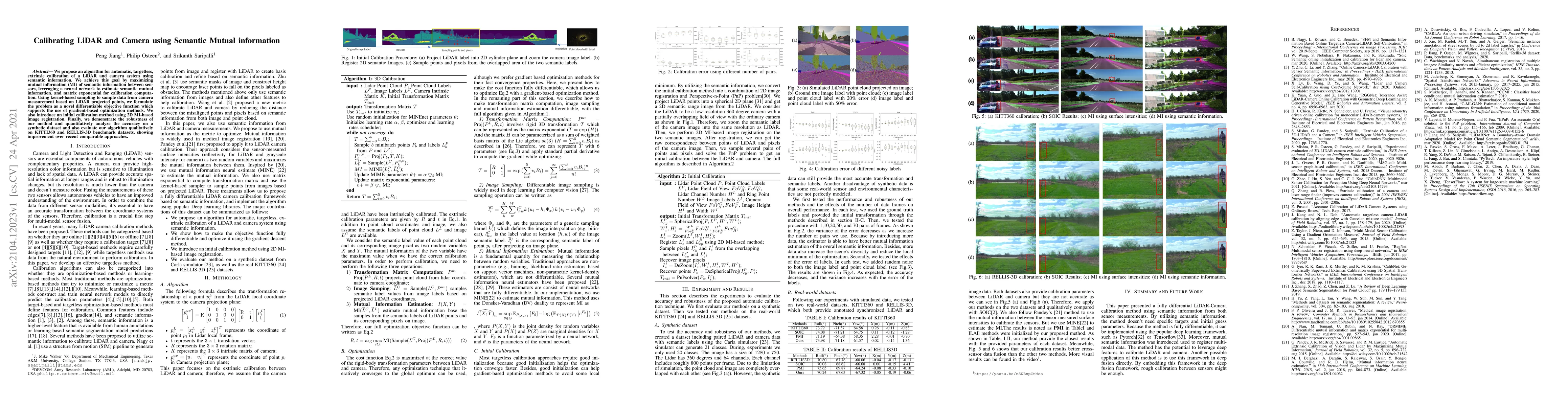 This paper proposes an algorithm for automatic extrinsic calibration of LiDAR and camera systems using semantic mutual information, leveraging neural networks and gradient-based optimization. It demonstrates improved accuracy and robustness on synthetic and real-world datasets compared to recent methods.