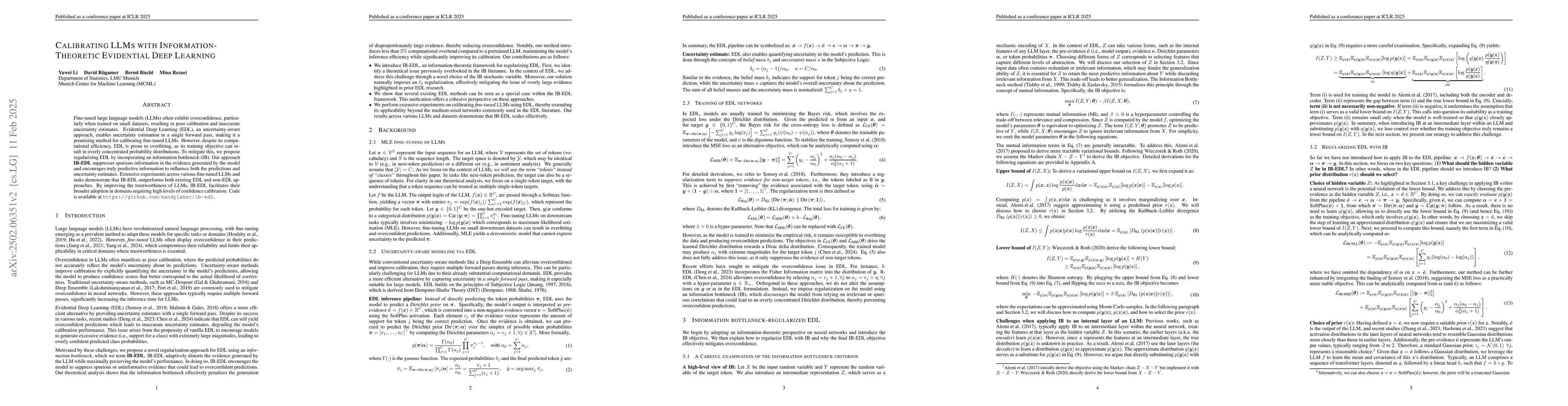 This paper proposes an information bottleneck-regularized Evidential Deep Learning (IB-EDL) method to improve the calibration of fine-tuned large language models (LLMs). The approach mitigates overfitting and enhances uncertainty estimation, leading to better performance across various tasks.