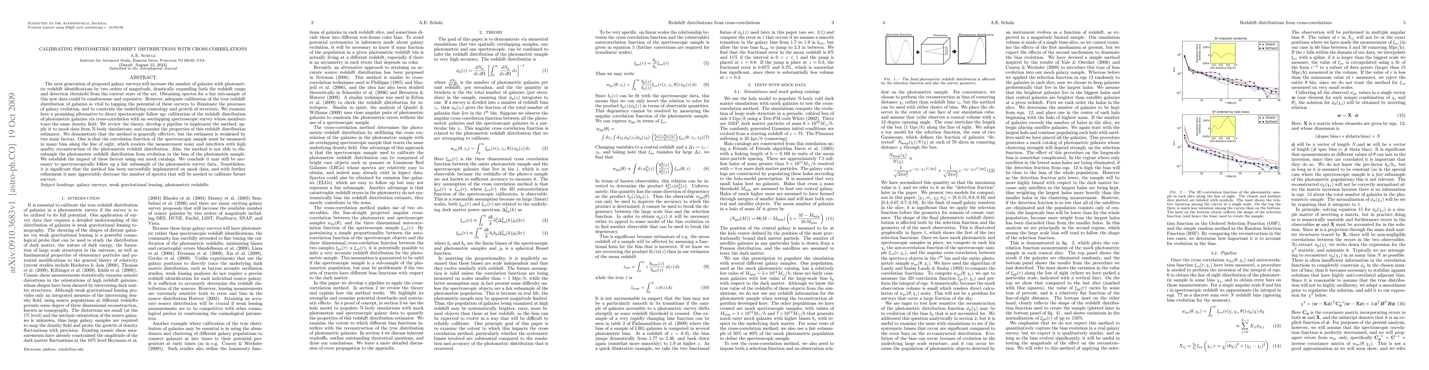 The next generation of proposed galaxy surveys will increase the number of galaxies with photometric redshifts by two orders of magnitude, drastically expanding both redshift range and detection threshold from the current state of the art. Obtaining spectra for a fair sub-sample of this new data could be cumbersome and expensive. However, adequate calibration of the true redshift distribution of galaxies is vital to tapping the potential of these surveys. We examine a promising alternative to direct spectroscopic follow up: calibration of the redshift distribution of photometric galaxies via cross-correlation with an overlapping spectroscopic survey whose members trace the same density field. We review the theory, develop a pipeline, apply it to mock data from N-body simulations, and examine the properties of this redshift distribution estimator. We demonstrate that the method is effective, but the estimator is weakened by two factors. 1) The correlation function of the spectroscopic sample must be measured in many bins along the line of sight, rendering it noisy and interfering with high quality reconstruction of the photometric redshift distribution. 2) The method is not able to disentangle the photometric redshift distribution from evolution in the bias of the photometric sample. We establish the impact of these factors using our mock catalogs. Although it may still be necessary to spectroscopically follow up a fair subsample of the photometric survey data, further refinement may appreciably decrease the number of spectra that will be needed to calibrate future surveys.
