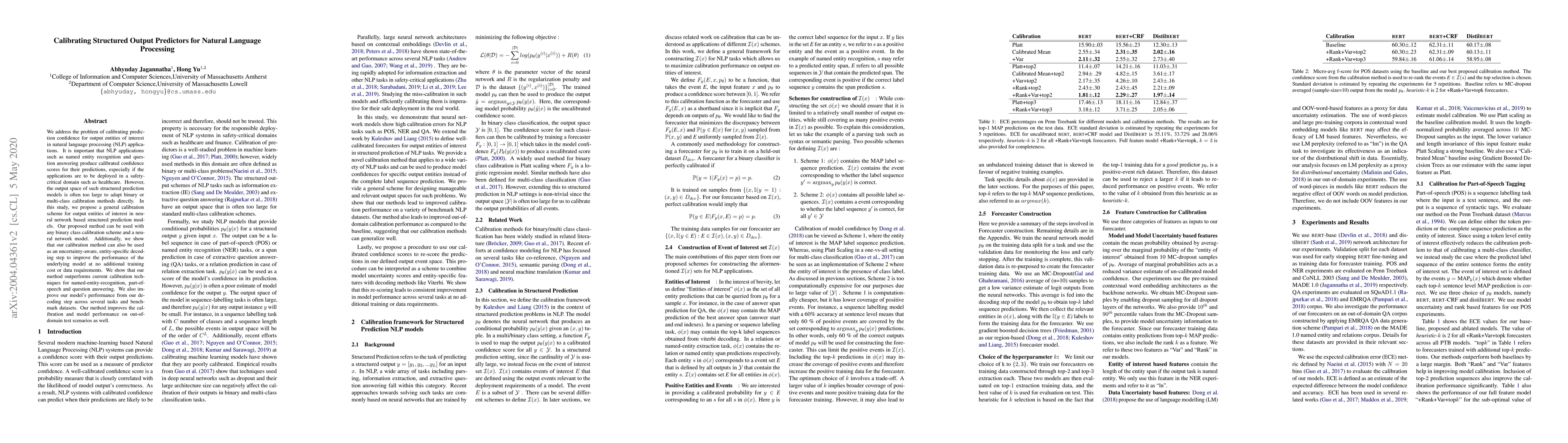 This paper proposes a novel calibration scheme for structured output predictors in NLP, enhancing prediction confidence for applications like named entity recognition and question answering. The method improves model performance and calibration without additional training costs, outperforming existing techniques across various tasks.