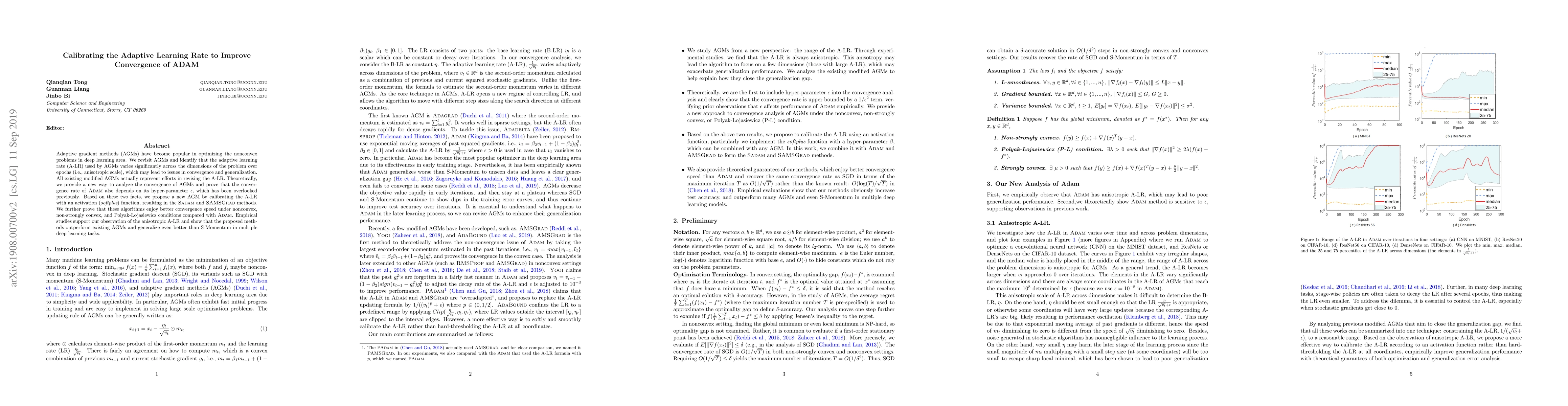 This paper proposes new adaptive gradient methods, Sadam and SAMSGrad, to improve the convergence of ADAM by calibrating the adaptive learning rate using a softplus function. Theoretical and empirical studies show that these methods achieve faster convergence and better generalization compared to ADAM.