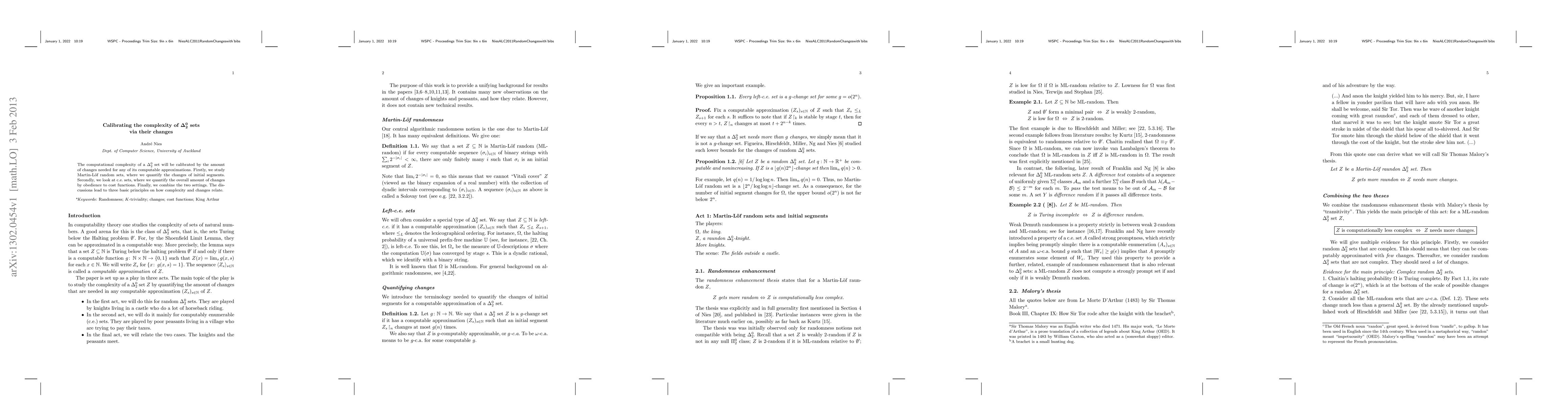 The computational complexity of a Delta 2 set will be calibrated by the amount of changes needed for any of its computable approximations. Firstly, we study Martin-Loef random sets, where we quantify the changes of initial segments. Secondly, we look at c.e. sets, where we quantify the overall amount of changes by obedience to cost functions. Finally, we combine the two settings. The discussions lead to three basic principles on how complexity and changes relate.