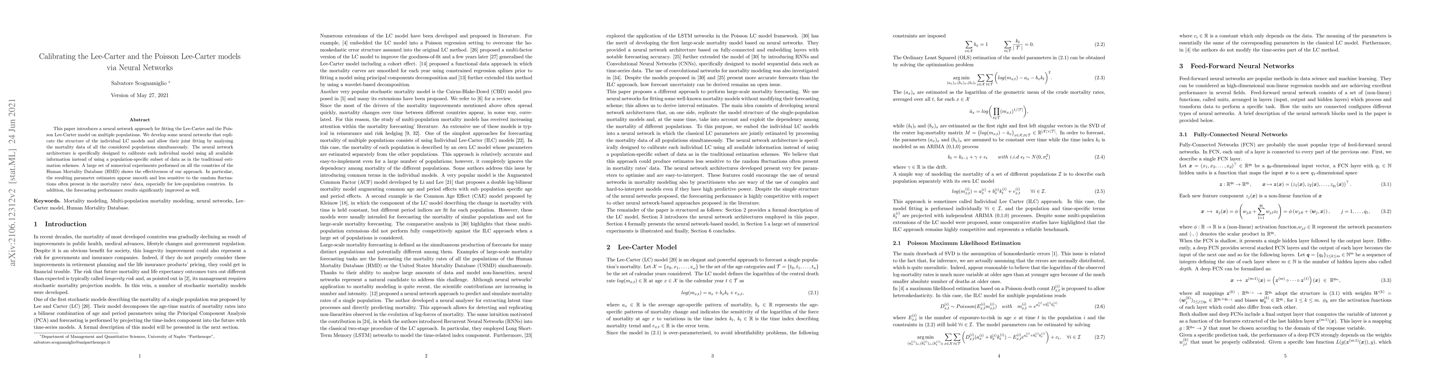 This paper proposes a neural network method to fit the Lee-Carter and Poisson Lee-Carter models across multiple populations, achieving smoother parameter estimates and improved forecasting performance, especially for low-population countries, compared to traditional estimation methods.