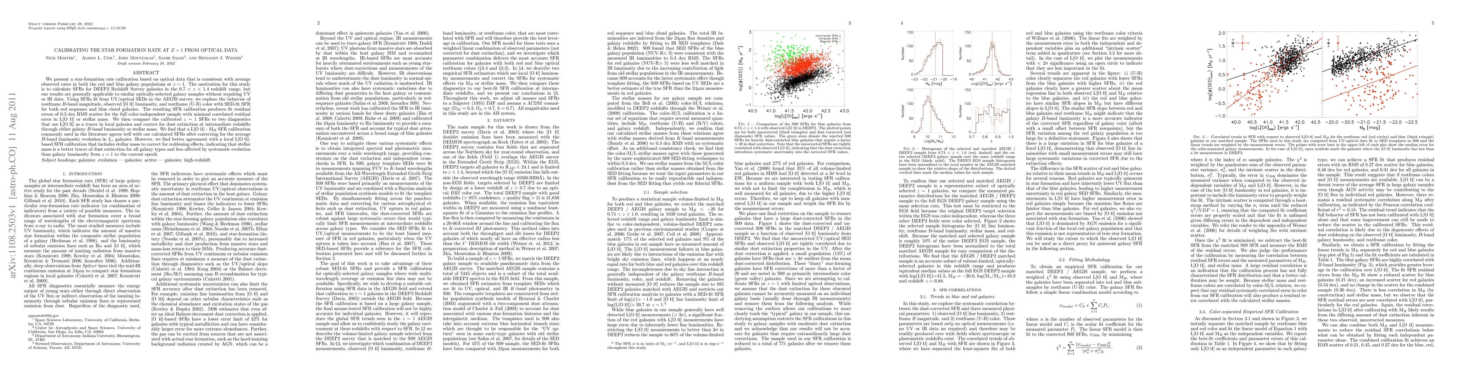 populations at z~1. The motivation for this study is to calculate SFRs for