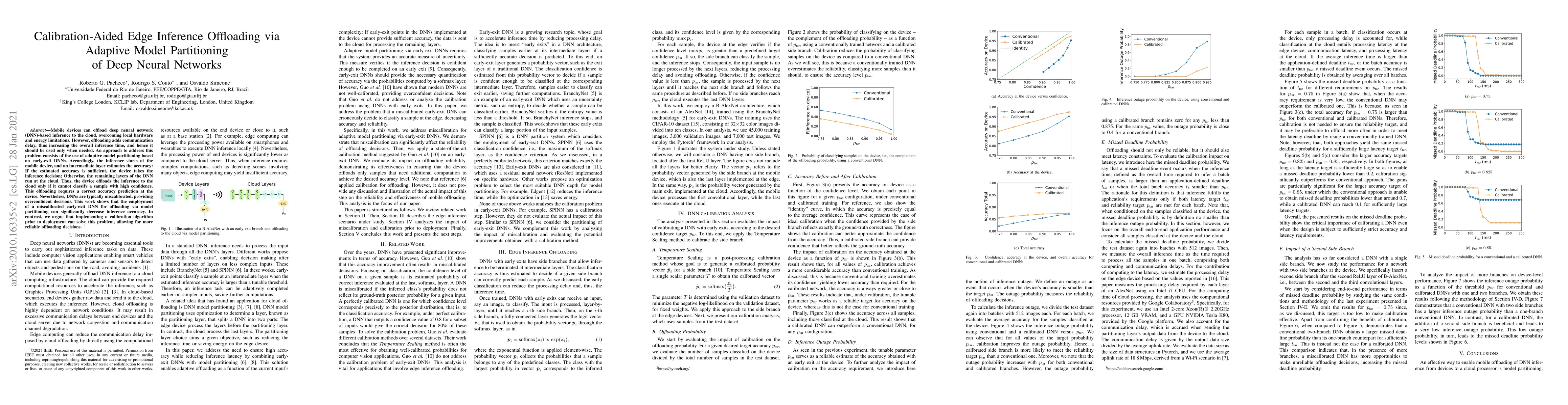 Mobile devices can offload deep neural network (DNN)-based inference to the cloud, overcoming local hardware and energy limitations. However, offloading adds communication delay, thus increasing the overall inference time, and hence it should be used only when needed. An approach to address this problem consists of the use of adaptive model partitioning based on early-exit DNNs. Accordingly, the inference starts at the mobile device, and an intermediate layer estimates the accuracy: If the estimated accuracy is sufficient, the device takes the inference decision; Otherwise, the remaining layers of the DNN run at the cloud. Thus, the device offloads the inference to the cloud only if it cannot classify a sample with high confidence. This offloading requires a correct accuracy prediction at the device. Nevertheless, DNNs are typically miscalibrated, providing overconfident decisions. This work shows that the employment of a miscalibrated early-exit DNN for offloading via model partitioning can significantly decrease inference accuracy. In contrast, we argue that implementing a calibration algorithm prior to deployment can solve this problem, allowing for more reliable offloading decisions.
