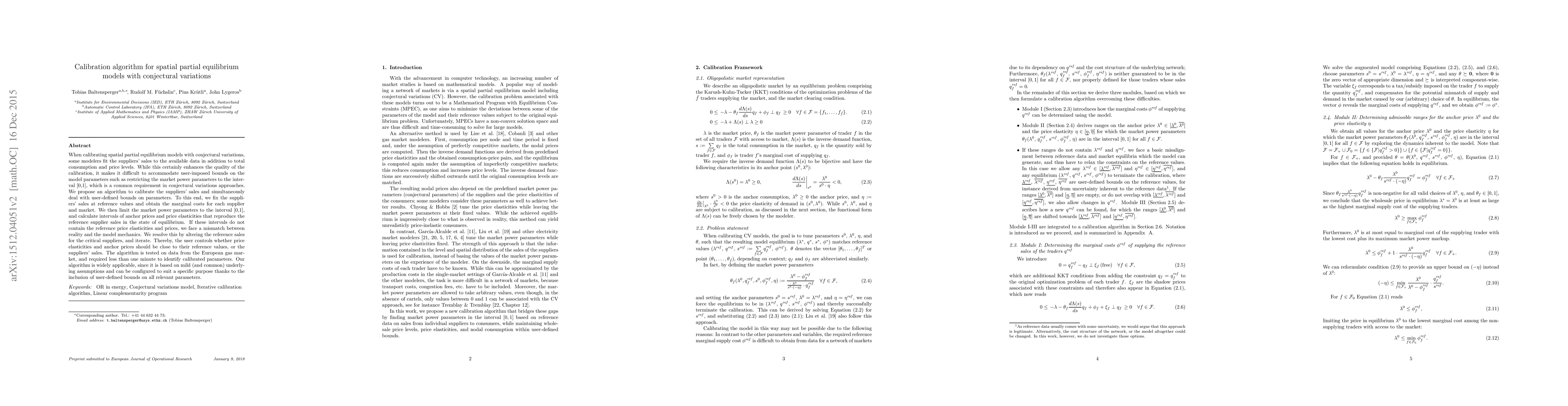 When calibrating spatial partial equilibrium models with conjectural variations, some modelers fit the suppliers' sales to the available data in addition to total consumption and price levels. While this certainly enhances the quality of the calibration, it makes it difficult to accommodate user-imposed bounds on the model parameters such as restricting the market power parameters to the interval [0,1], which is a common requirement in conjectural variations approaches. We propose an algorithm to calibrate the suppliers' sales and simultaneously deal with user-defined bounds on parameters. To this end, we fix the suppliers' sales at reference values and obtain the marginal costs for each supplier and market. We then limit the market power parameters to the interval [0,1], and calculate intervals of anchor prices and price elasticities that reproduce the reference supplier sales in the state of equilibrium. If these intervals do not contain the reference price elasticities and prices, we face a mismatch between reality and the model mechanics. We resolve this by altering the reference sales for the critical suppliers, and iterate. Thereby, the user controls whether price elasticities and anchor prices should be close to their reference values, or the suppliers' sales. The algorithm is tested on data from the European gas market, and required less than one minute to identify calibrated parameters. Our algorithm is widely applicable, since it is based on mild (and common) underlying assumptions and can be configured to suit a specific purpose thanks to the inclusion of user-defined bounds on all relevant parameters.