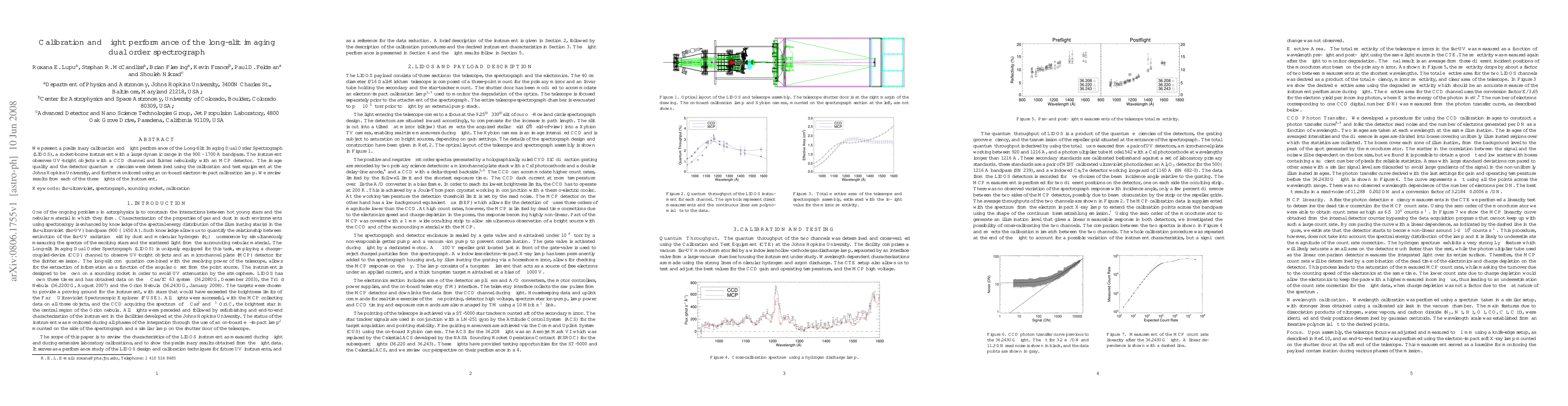 This paper presents the preliminary calibration and flight performance of the Long-Slit Imaging Dual Order Spectrograph (LIDOS), a rocket-borne instrument designed to observe UV-bright objects and fainter nebulosity. Results from three flights are reviewed, detailing image quality and detector efficiencies.