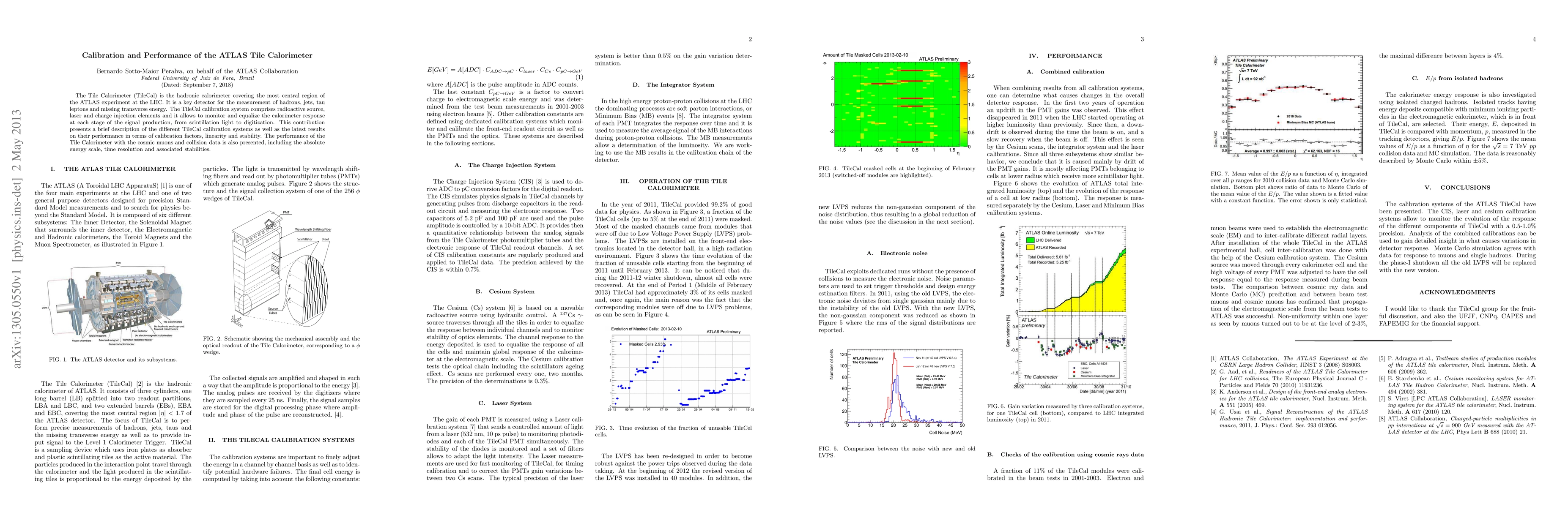 The ATLAS Tile Calorimeter (TileCal) central hadronic detector undergoes calibration using a combination of radioactive sources, lasers, and charge injection to ensure accurate measurement of hadrons and jets. The paper reports on the calibration system's performance, including calibration factors, linearity, and stability, as well as its operational effectiveness using cosmic muons and collision data.