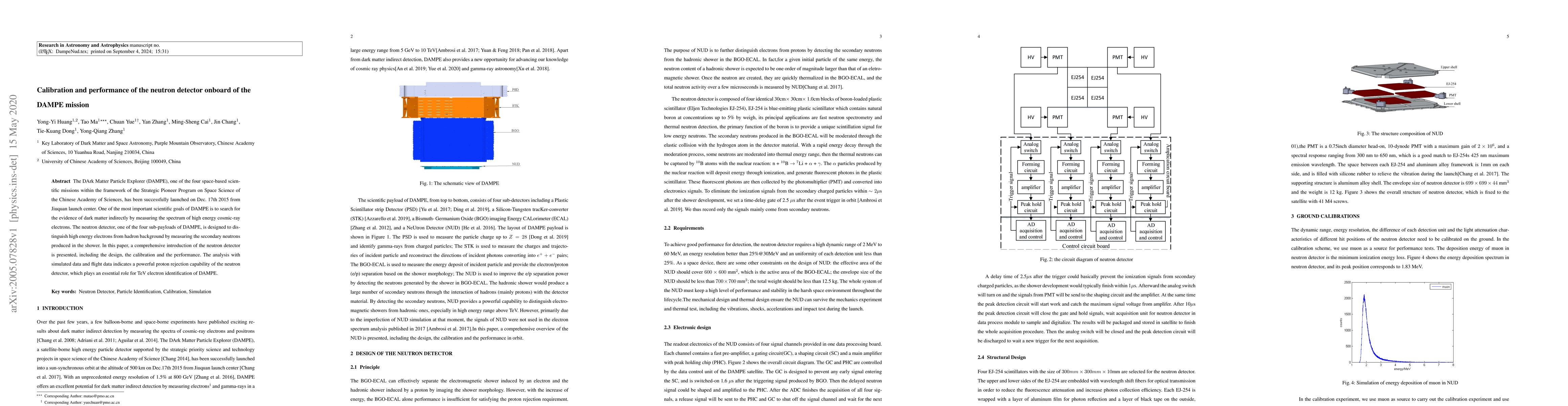 This paper details the design, calibration, and performance of the neutron detector on the DAMPE mission, which distinguishes high-energy cosmic-ray electrons from hadron backgrounds by measuring secondary neutrons. The analysis shows the detector's effective proton rejection capability, crucial for the mission's goal of identifying TeV electrons and searching for dark matter evidence.