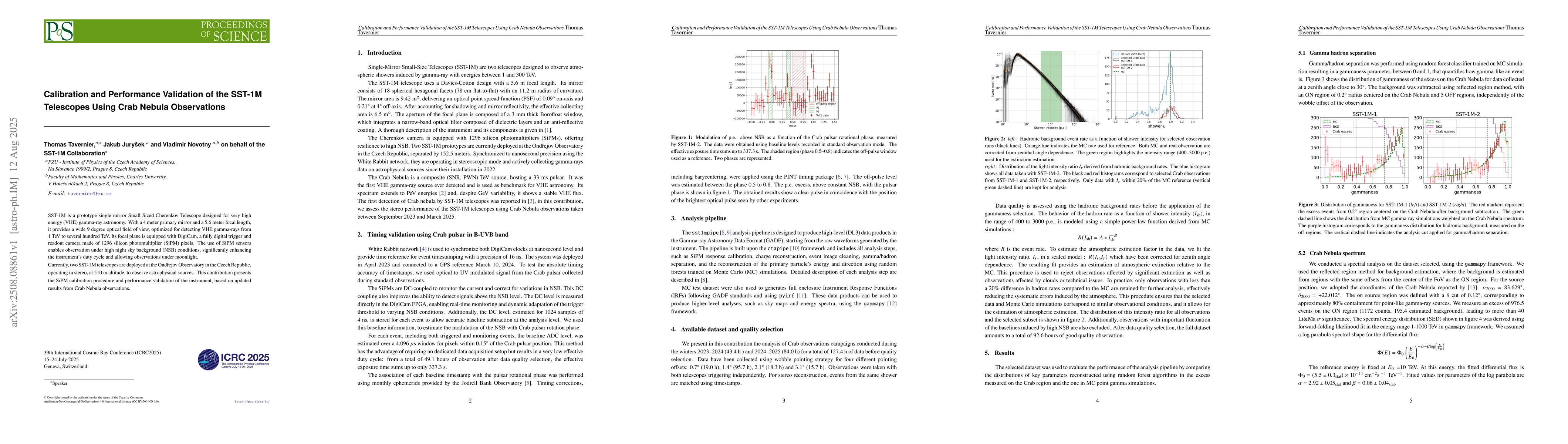 SST-1M is a prototype single mirror Small Sized Cherenkov Telescope designed for very high energy (VHE) gamma-ray astronomy. With a 4 meter primary mirror and a 5.6 meter focal length, it provides a wide 9 degree optical field of view, optimized for detecting VHE gamma-rays from 1 TeV to several hundred TeV. Its focal plane is equipped with DigiCam, a fully digital trigger and readout camera made of 1296 silicon photomultiplier (SiPM) pixels. The use of SiPM sensors enables observation under high night sky background (NSB) conditions, significantly enhancing the instrument's duty cycle and allowing observations under moonlight. Currently, two SST-1M telescopes are deployed at the Ond\v rejov Observatory in the Czech Republic, operating in stereo, at 510 m altitude, to observe astrophysical sources. This contribution presents the SiPM calibration procedure and performance validation of the instrument, based on updated results from Crab Nebula observations.