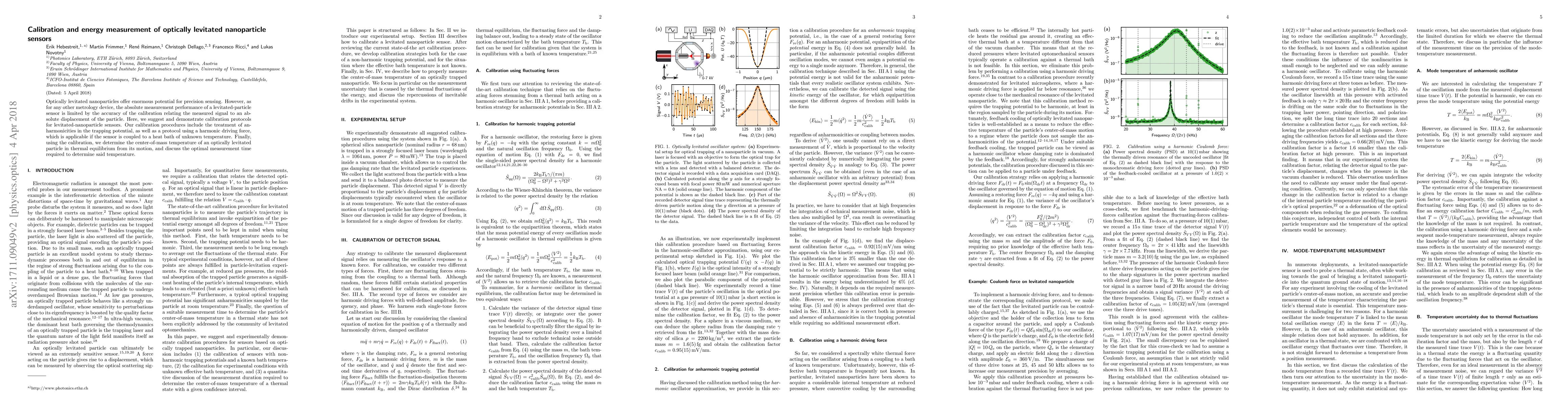 The research presents calibration protocols for levitated-nanoparticle sensors, addressing anharmonicities in trapping potentials and providing a protocol for determining the center-of-mass temperature from motion using a harmonic driving force.