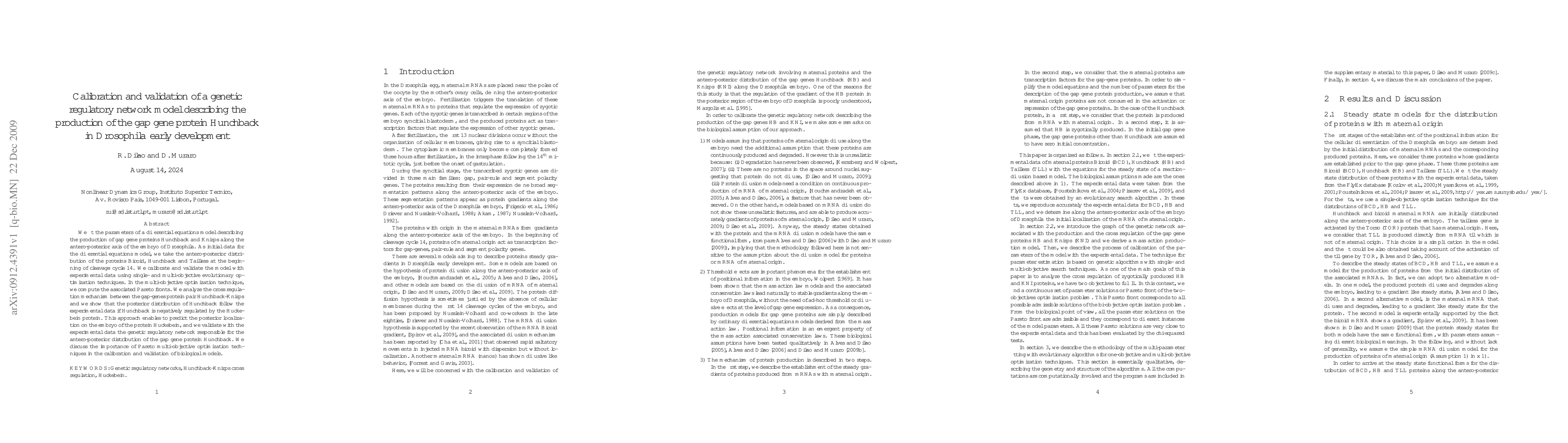 This paper calibrates and validates a differential equations model for the production of gap gene proteins Hunchback and Knirps in \emph{Drosophila} embryos, using evolutionary optimization techniques. The model accurately predicts the posterior distribution of Hunchback when negatively regulated by Huckebein, validated against experimental data.