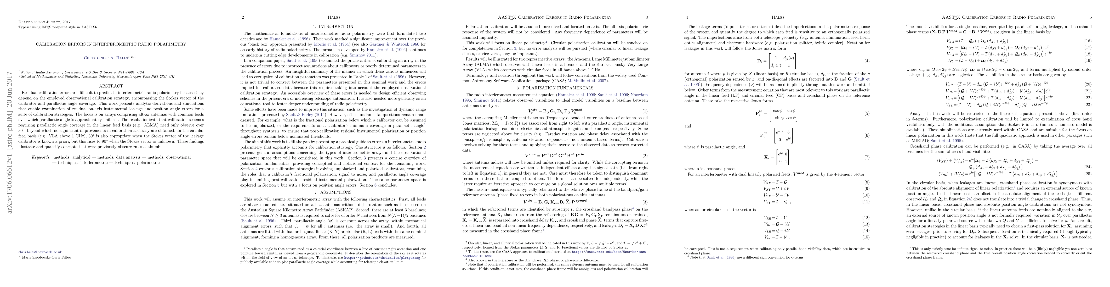 This paper investigates residual calibration errors in interferometric radio polarimetry, revealing that observing over 30 degrees of parallactic angle is sufficient for most calibration strategies, with exceptions when the Stokes vector of the leakage calibrator is unknown.