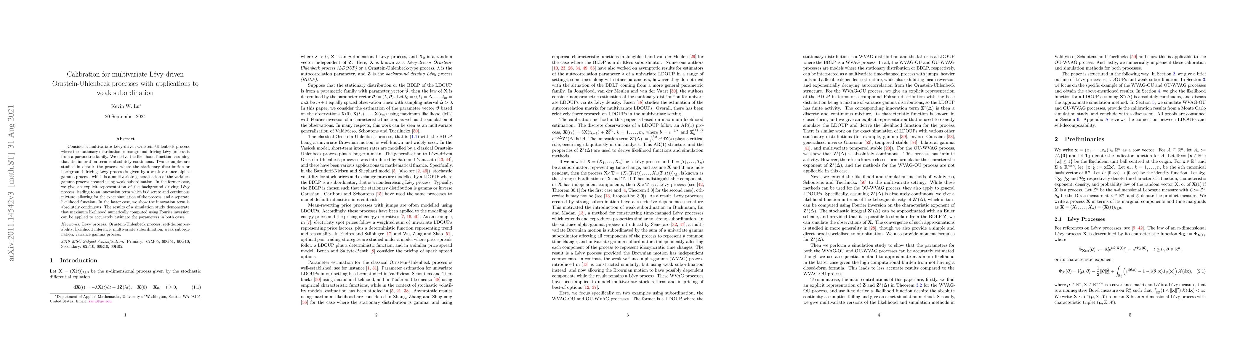 This paper derives the likelihood function for multivariate L\'evy-driven Ornstein-Uhlenbeck processes with a parametric family background. It provides explicit representations and simulation methods for processes driven by weak variance alpha-gamma processes, demonstrating accurate parameter estimation via Fourier inversion.