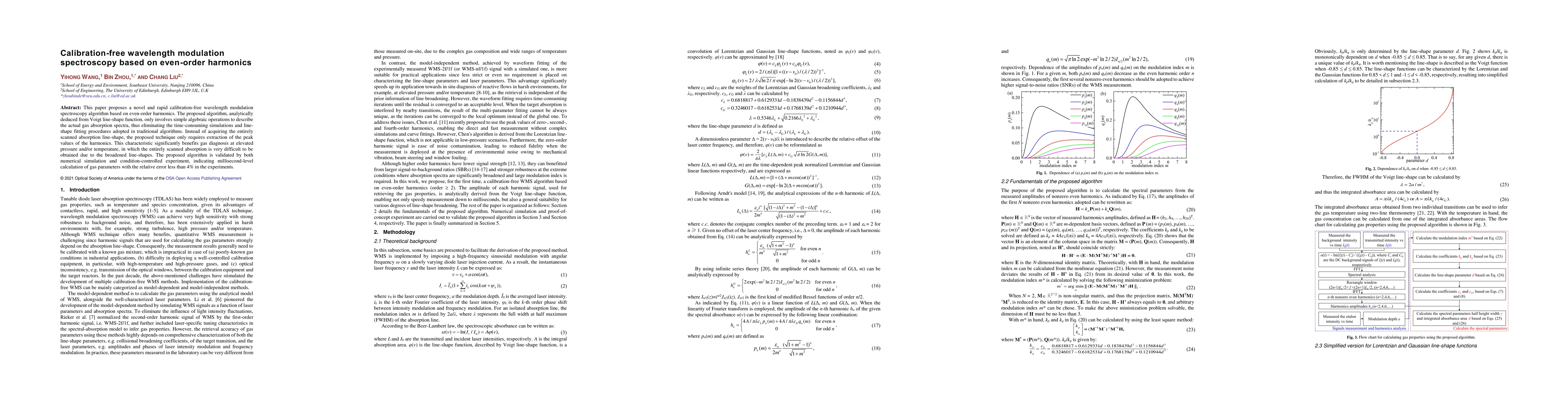 This paper introduces a calibration-free wavelength modulation spectroscopy algorithm based on even-order harmonics, eliminating traditional time-consuming simulations and fitting procedures. The method, validated by simulations and experiments, achieves millisecond-level gas parameter calculations with less than 4% relative error.