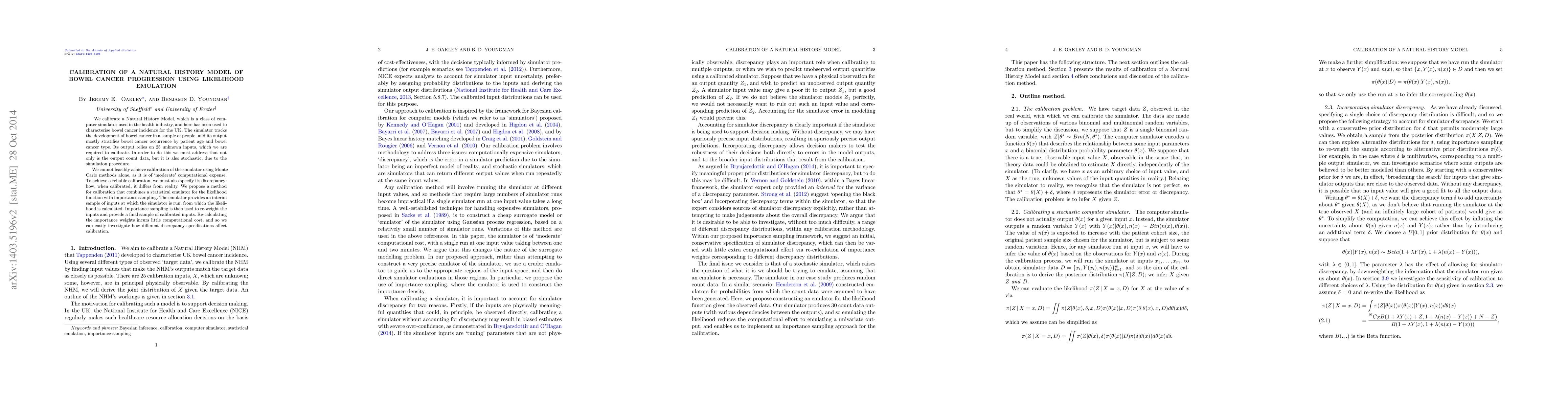 A Bayesian approach was used to calibrate the computer model, incorporating prior knowledge of the disease process and incorporating functional output.