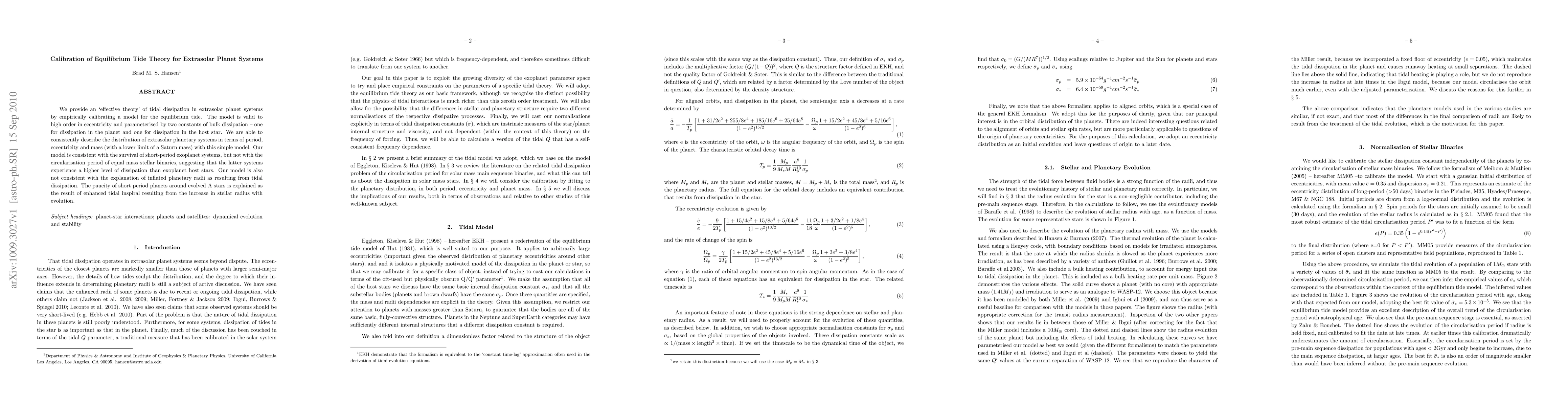 This research paper presents an 'effective theory' of tidal dissipation in extrasolar planets, calibrated by an equilibrium tide model. The model, valid for high eccentricities, uses two dissipation constants for planets and stars. It explains the distribution of exoplanets, their survival in short periods, and the lack of close planets around evolved A stars, but doesn't support tidal dissipation as the cause for inflated planetary radii.