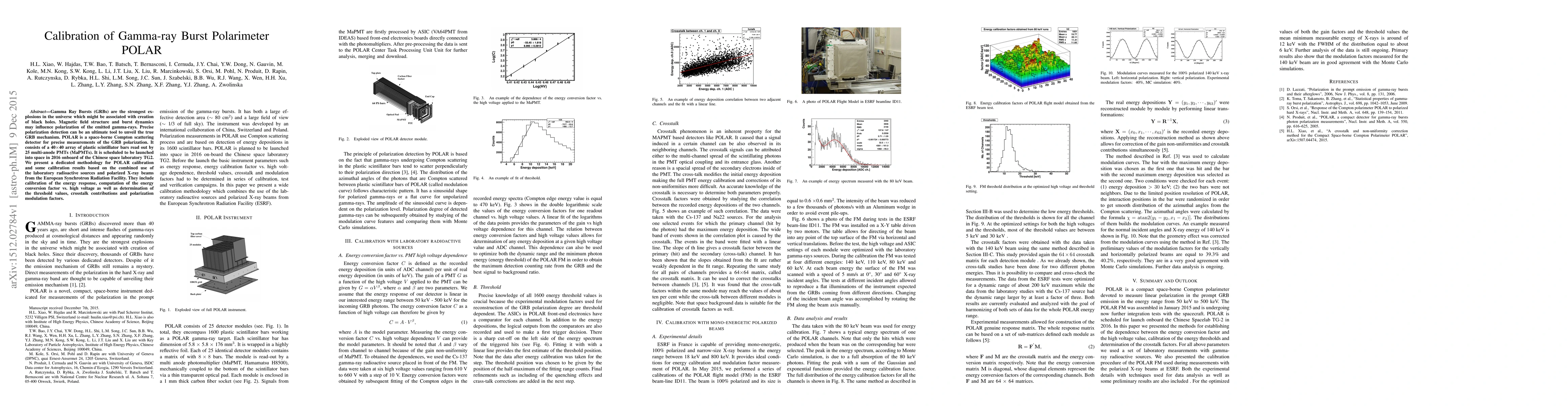 This paper details the calibration methodology for the POLAR gamma-ray burst polarimeter, which aims to measure the polarization of gamma-rays from GRBs. The calibration involves laboratory radioactive sources and polarized X-ray beams, focusing on energy response, conversion factors, threshold values, and polarization modulation factors.