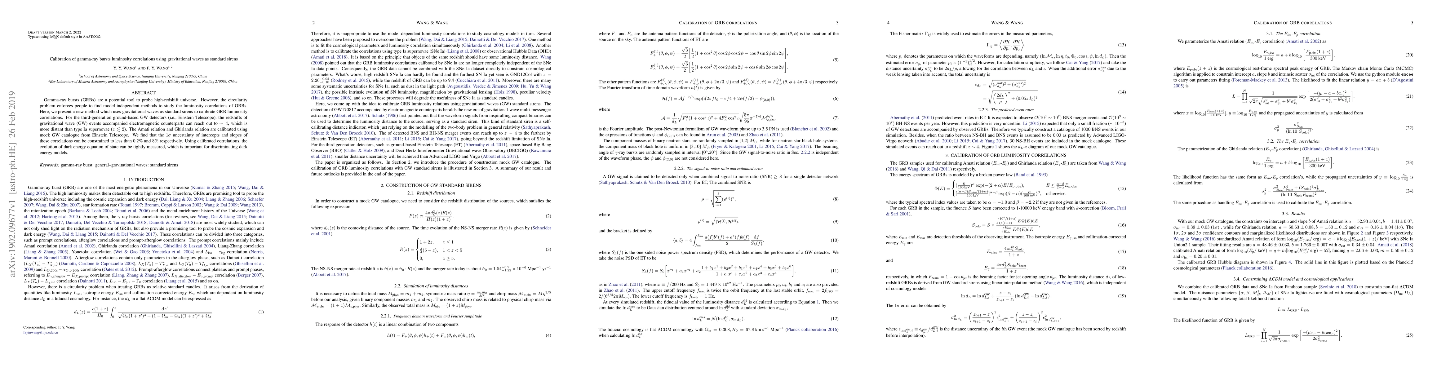 Gamma-ray bursts (GRBs) are a potential tool to probe high-redshift universe. However, the circularity problem enforces people to find model-independent methods to study the luminosity correlations of GRBs. Here, we present a new method which uses gravitational waves as standard sirens to calibrate GRB luminosity correlations. For the third-generation ground-based GW detectors (i.e., Einstein Telescope), the redshifts of gravitational wave (GW) events accompanied electromagnetic counterparts can reach out to $\sim 4$, which is more distant than type Ia supernovae ($z\lesssim 2$). The Amati relation and Ghirlanda relation are calibrated using mock GW catalogue from Einstein Telescope. We find that the $1\sigma$ uncertainty of intercepts and slopes of these correlations can be constrained to less than 0.2\% and 8\% respectively. Using calibrated correlations, the evolution of dark energy equation of state can be tightly measured, which is important for discriminating dark energy models.