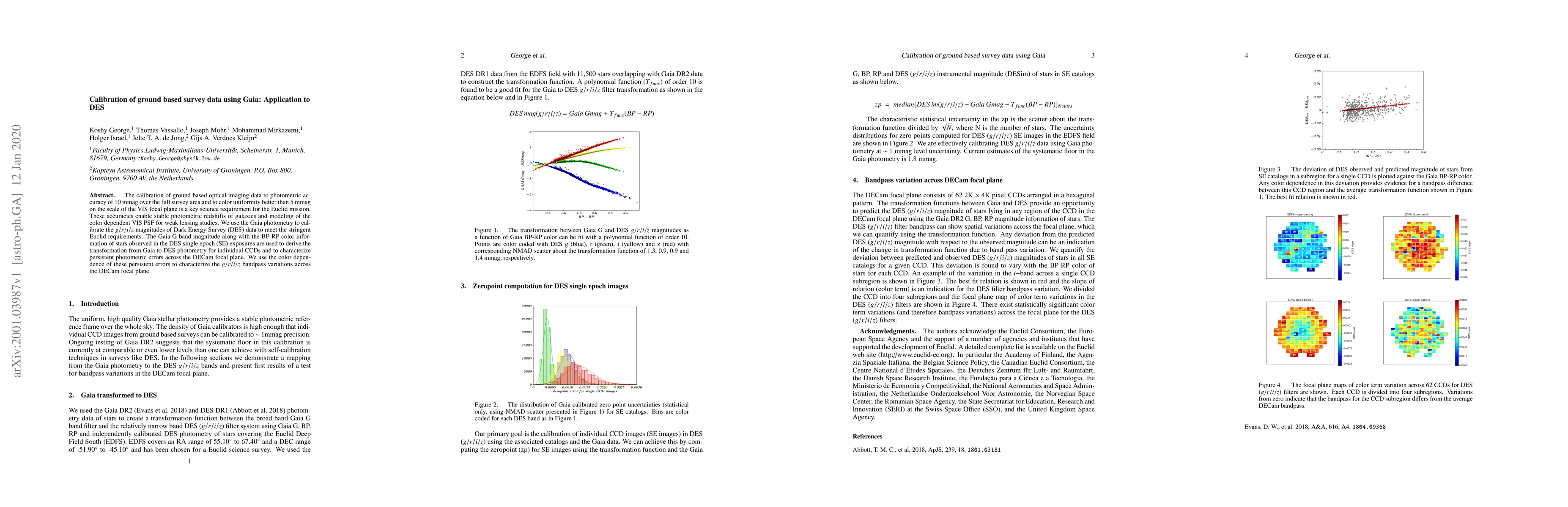 This paper calibrates Dark Energy Survey (DES) data using Gaia photometry to achieve photometric accuracy of 10 mmag and color uniformity better than 5 mmag, essential for the Euclid mission's requirements for stable photometric redshifts and weak lensing studies. The transformation from Gaia to DES is derived using Gaia G band magnitudes and color information.