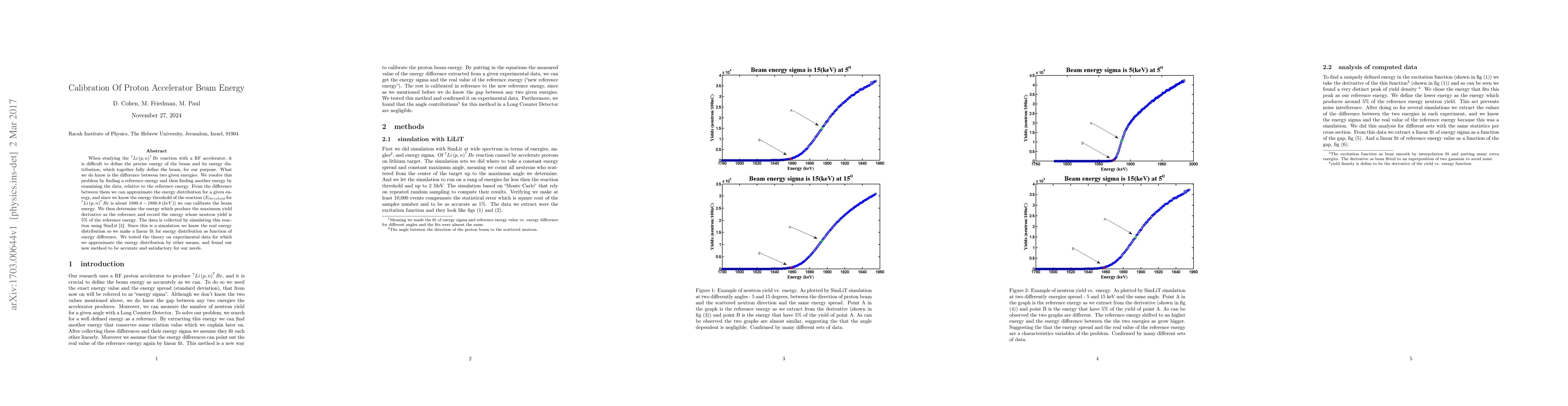 Researchers developed a method to calibrate proton accelerator beam energy by comparing data from simulations and experiments, allowing for accurate approximation of energy distribution and calibration at specific energies.