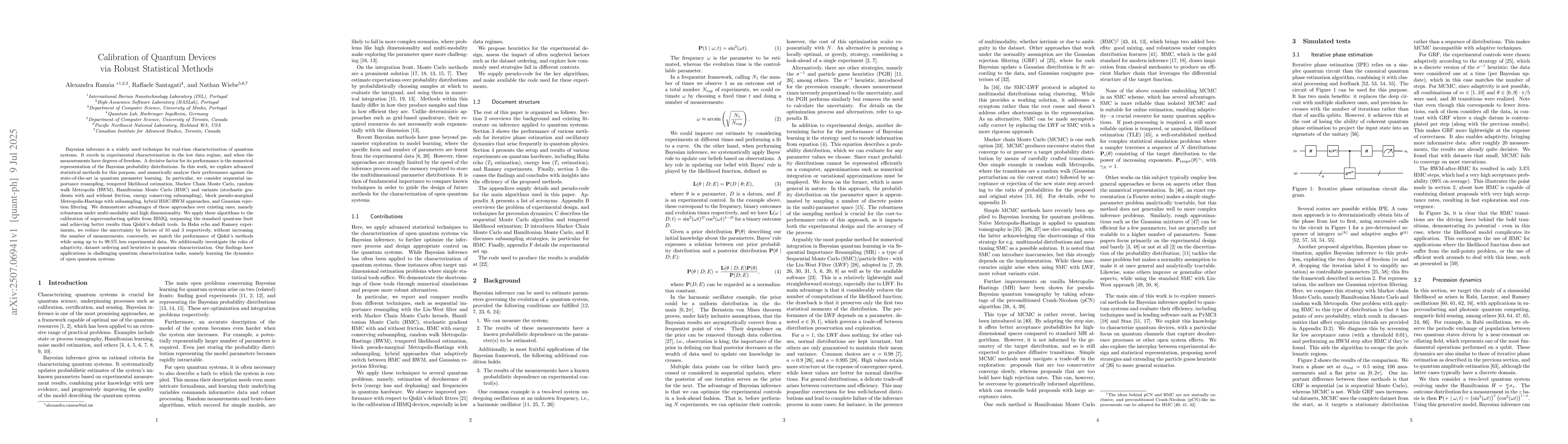 Bayesian inference is a widely used technique for real-time characterization of quantum systems. It excels in experimental characterization in the low data regime, and when the measurements have degrees of freedom. A decisive factor for its performance is the numerical representation of the Bayesian probability distributions. In this work, we explore advanced statistical methods for this purpose, and numerically analyze their performance against the state-of-the-art in quantum parameter learning. In particular, we consider sequential importance resampling, tempered likelihood estimation, Markov Chain Monte Carlo, random walk Metropolis (RWM), Hamiltonian Monte Carlo (HMC) and variants (stochastic gradients with and without friction, energy conserving subsampling), block pseudo-marginal Metropolis-Hastings with subsampling, hybrid HMC-RWM approaches, and Gaussian rejection filtering. We demonstrate advantages of these approaches over existing ones, namely robustness under multi-modality and high dimensionality. We apply these algorithms to the calibration of superconducting qubits from IBMQ, surpassing the standard quantum limit and achieving better results than Qiskit's default tools. In Hahn echo and Ramsey experiments, we reduce the uncertainty by factors of 10 and 3 respectively, without increasing the number of measurements; conversely, we match the performance of Qiskit's methods while using up to to 99.5% less experimental data. We additionally investigate the roles of adaptivity, dataset ordering and heuristics in quantum characterization. Our findings have applications in challenging quantum characterization tasks, namely learning the dynamics of open quantum systems.