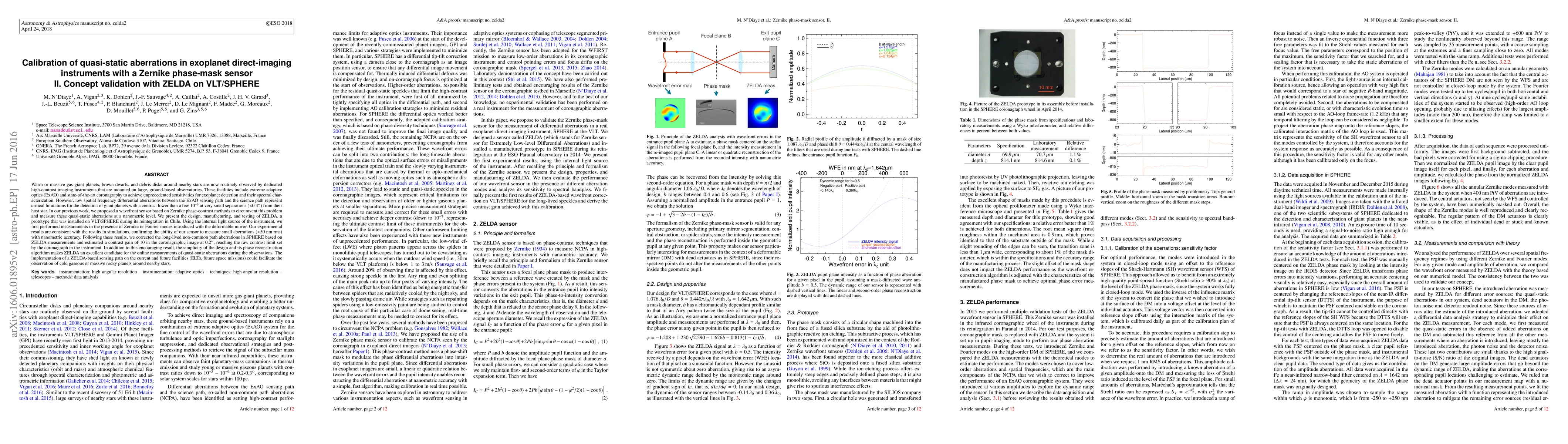 The research presents the design, manufacturing, and testing of ZELDA, a Zernike phase-mask sensor prototype installed on VLT/SPHERE. It validates the concept by introducing Zernike and Fourier modes on the deformable mirror and measuring aberrations using the internal light source.