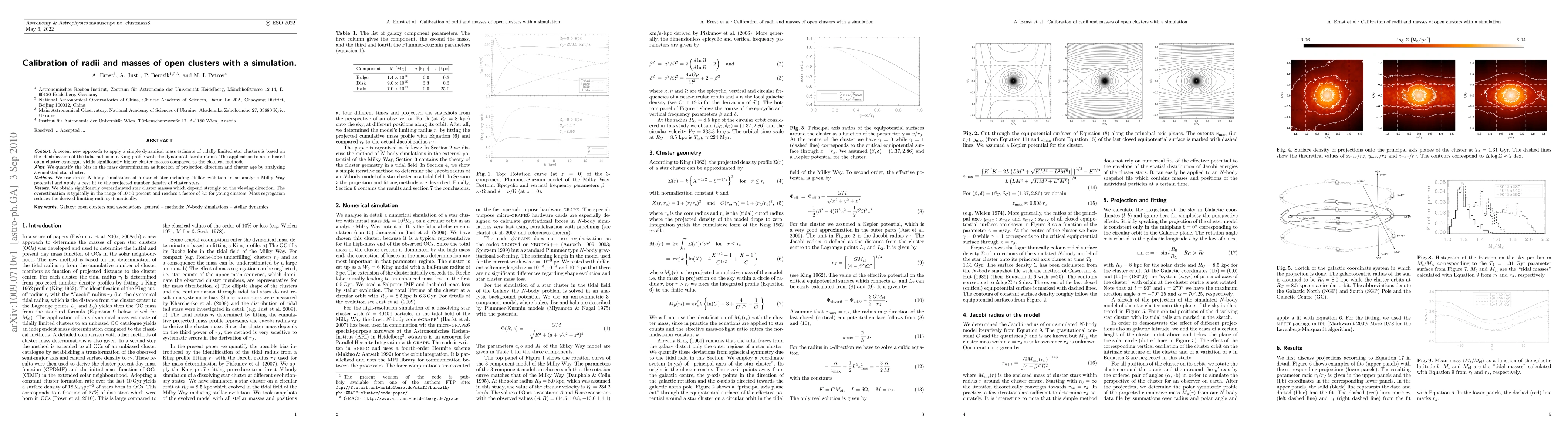 Context: A recent new approach to apply a simple dynamical mass estimate of tidally limited star clusters is based on the identification of the tidal radius in a King profile with the dynamical Jacobi radius. The application to an unbiased open cluster catalogue yields significantly higher cluster masses compared to the classical methods. Aims: We quantify the bias in the mass determination as function of projection direction and cluster age by analysing a simulated star cluster. Methods: We use direct $N$-body simulations of a star cluster including stellar evolution in an analytic Milky Way potential and apply a best fit to the projected number density of cluster stars. Results: We obtain significantly overestimated star cluster masses which depend strongly on the viewing direction. The overestimation is typically in the range of 10-50 percent and reaches a factor of 3.5 for young clusters. Mass segregation reduces the derived limiting radii systematically.