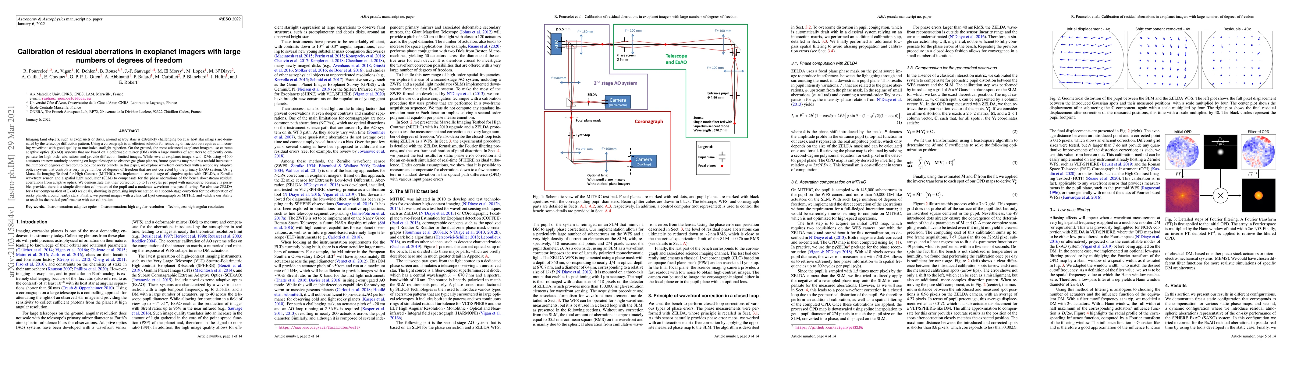 Imaging faint objects, such as exoplanets or disks, around nearby stars is extremely challenging because host star images are dominated by the telescope diffraction pattern. Using a coronagraph is an efficient solution for removing diffraction but requires an incoming wavefront with good quality to maximize starlight rejection. On the ground, the most advanced exoplanet imagers use extreme adaptive optics (ExAO) systems that are based on a deformable mirror (DM) with a large number of actuators to efficiently compensate for high-order aberrations and provide diffraction-limited images. While several exoplanet imagers with DMs using around 1500 actuators are now routinely operating on large telescopes to observe gas giant planets, future systems may require a tenfold increase in the number of degrees of freedom to look for rocky planets. In this paper, we explore wavefront correction with a secondary adaptive optics system that controls a very large number of degrees of freedom that are not corrected by the primary ExAO system. Using Marseille Imaging Testbed for High Contrast (MITHiC), we implement a second stage of adaptive optics with ZELDA, a Zernike wavefront sensor, and a spatial light modulator (SLM) to compensate for the phase aberrations of the bench downstream residual aberrations from adaptive optics. We demonstrate that their correction up to 137 cycles per pupil with nanometric accuracy is possible, provided there is a simple distortion calibration of the pupil and a moderate wavefront low-pass filtering. We also use ZELDA for a fast compensation of ExAO residuals, showing its promising implementation as a second-stage correction for the observation of rocky planets around nearby stars. Finally, we present images with a classical Lyot coronagraph on MITHiC and validate our ability to reach its theoretical performance with our calibration.