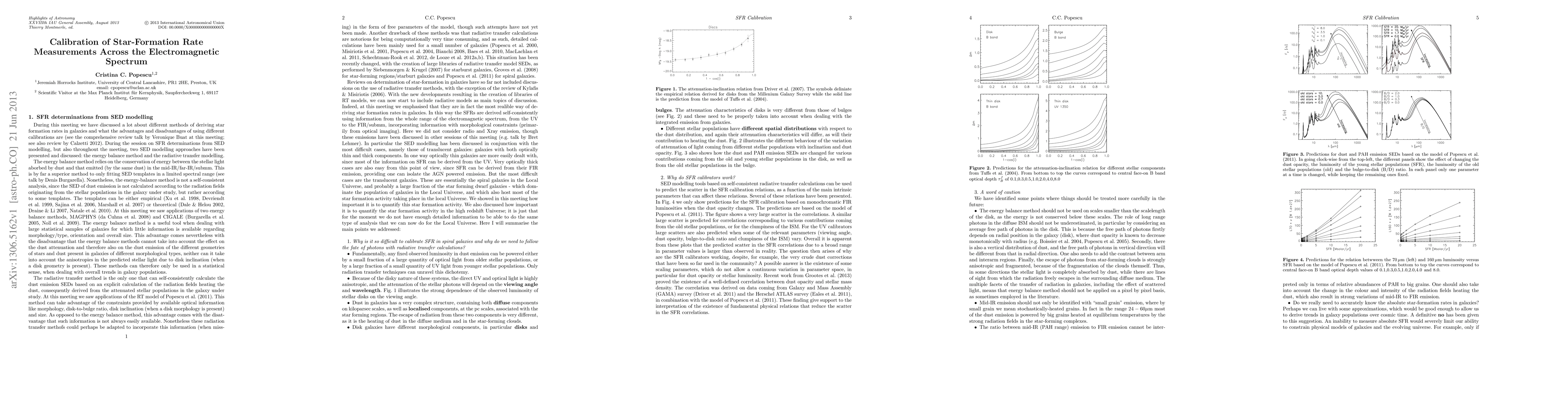 This is one chapter of the summary paper of the IAU Special Session SpS8 "Calibration of star-formation rate measurements across the electromagnetic spectrum", Beijing, China, August 2012.