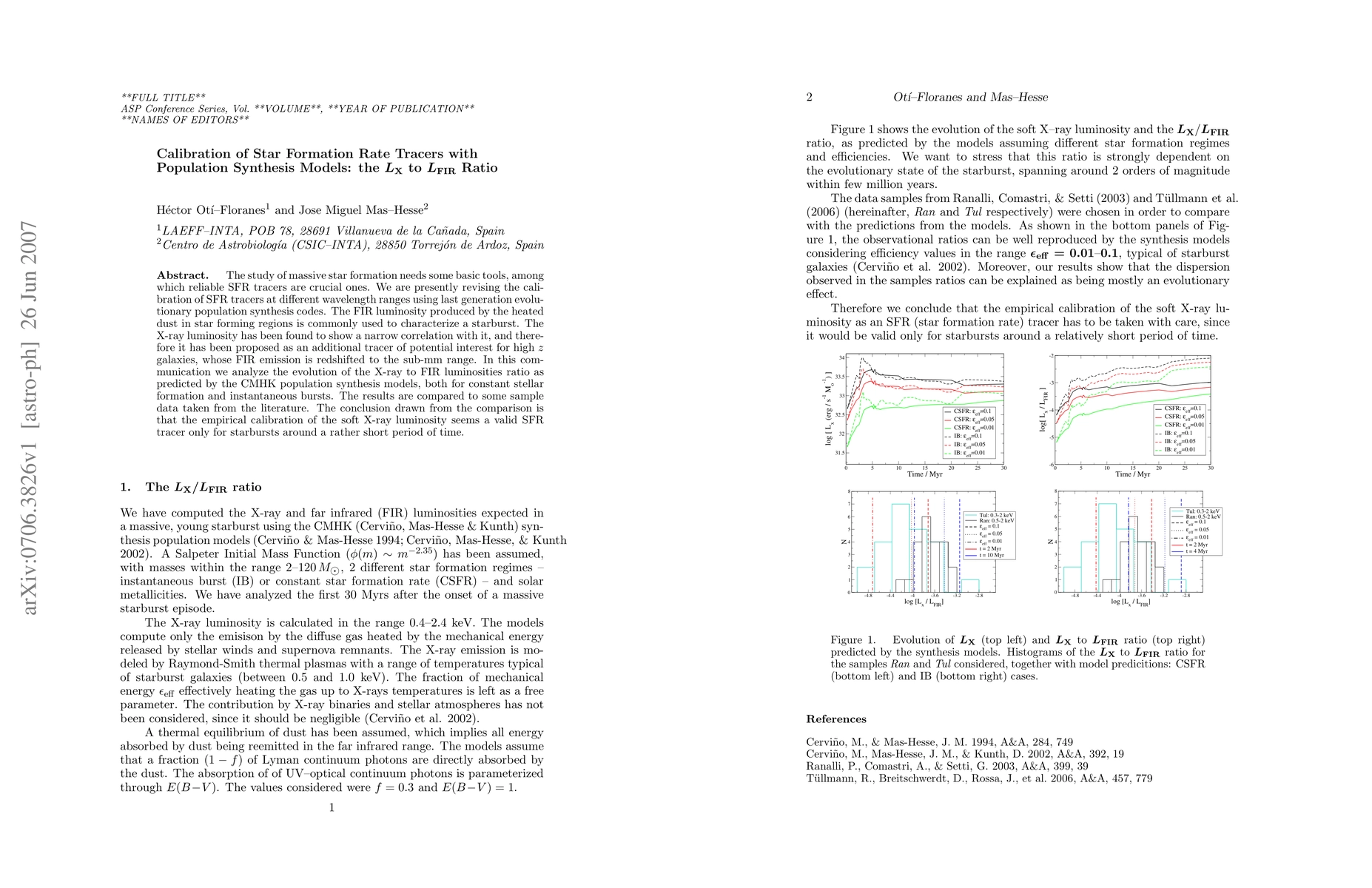 The study of massive star formation needs some basic tools, among which reliable SFR tracers are crucial ones. We are presently revising the calibration of SFR tracers at different wavelength ranges using last generation evolutionary population synthesis codes. The FIR luminosity produced by the heated dust in star forming regions is commonly used to characterize a starburst. The X-ray luminosity has been found to show a narrow correlation with it, and therefore it has been proposed as an additional tracer of potential interest for high $z$ galaxies, whose FIR emission is redshifted to the sub-mm range. In this communication we analyze the evolution of the X-ray to FIR luminosities ratio as predicted by the CMHK population synthesis models, both for constant stellar formation and instantaneous bursts. The results are compared to some sample data taken from the literature. The conclusion drawn from the comparison is that the empirical calibration of the soft X-ray luminosity seems a valid SFR tracer only for starbursts around a rather short period of time.