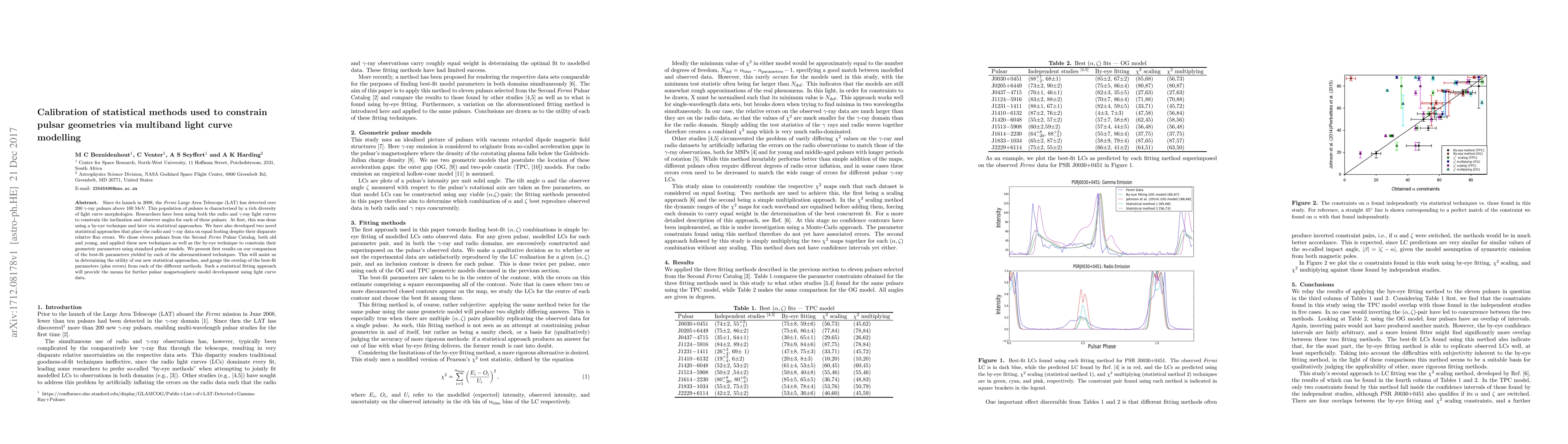 Since its launch in 2008, the Fermi Large Area Telescope (LAT) has detected over 200 -ray pulsars above 100 MeV. This population of pulsars is characterised by a rich diversity of light curve morphologies. Researchers have been using both the radio and -ray light curves to constrain the inclination and observer angles for each of these pulsars. At first, this was done using a by-eye technique and later via statistical approaches. We have also developed two novel statistical approaches that place the radio and -ray data on equal footing despite their disparate relative flux errors. We chose eleven pulsars from the Second Fermi Pulsar Catalog, both old and young, and applied these new techniques as well as the by-eye technique to constrain their geometric parameters using standard pulsar models. We present first results on our comparison of the best-fit parameters yielded by each of the aforementioned techniques. This will assist us in determining the utility of our new statistical approaches, and gauge the overlap of the best-fit parameters (plus errors) from each of the different methods. Such a statistical fitting approach will provide the means for further pulsar magnetospheric model development using light curve data.