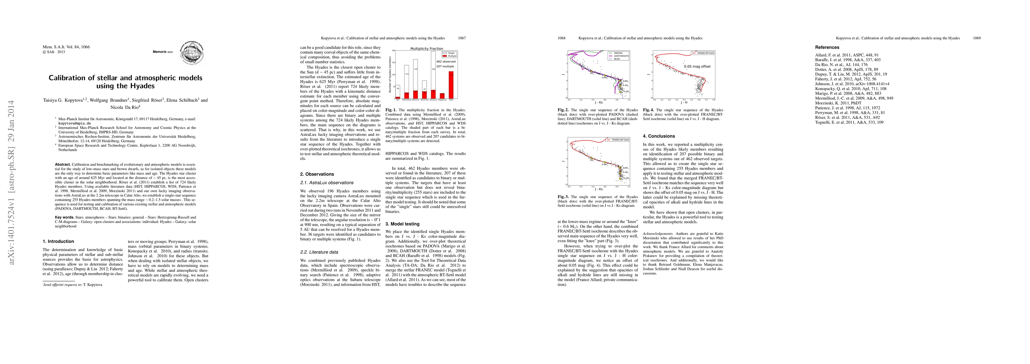 This paper calibrates stellar and atmospheric models using the Hyades star cluster, employing data from various sources and lucky imaging to create a single-star sequence of 255 members. The study tests and benchmarks models like PADOVA, DARTMOUTH, BCAH, and BT-Settl against this sequence.