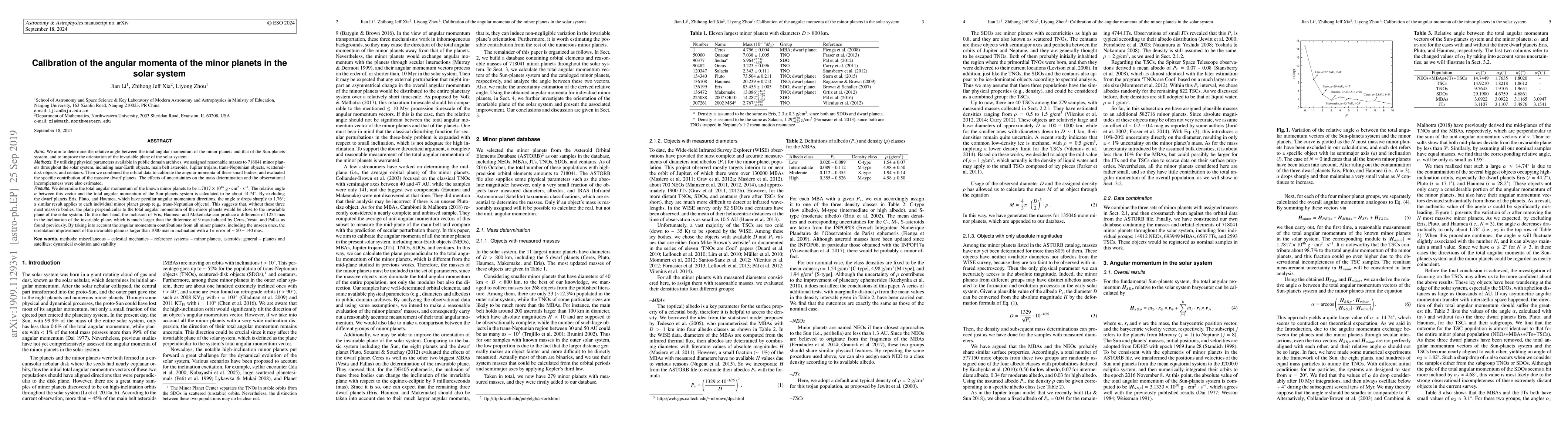 Researchers used data from 718,041 minor planets to calculate their total angular momentum and compare it to that of the Sun-planets system, finding a relative angle of 14.74 degrees that improves the orientation of the solar system's invariable plane.
