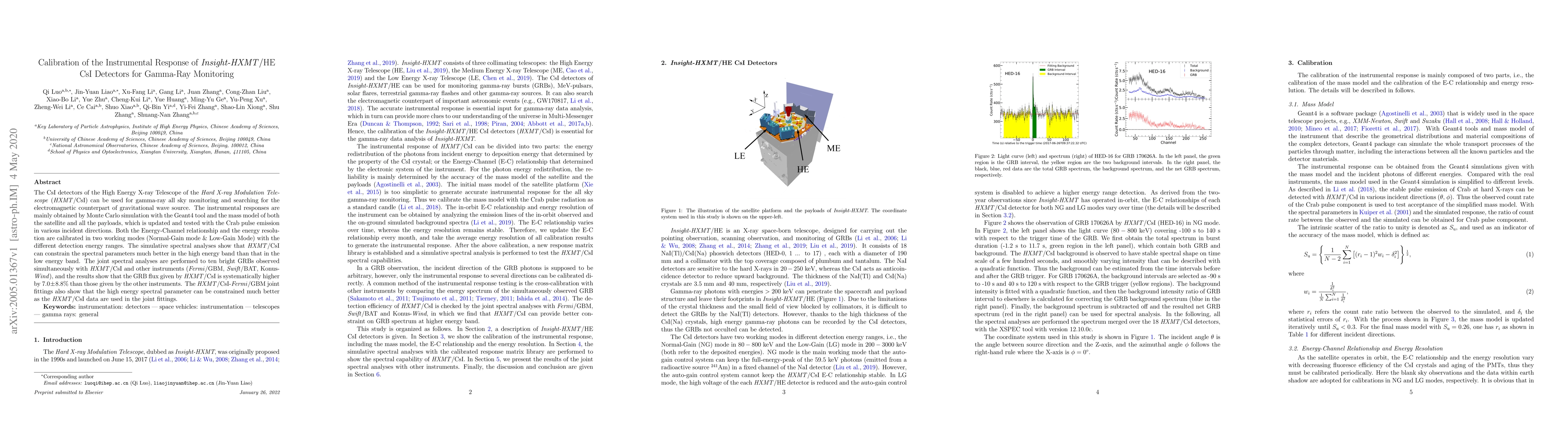 Researchers calibrated the gamma-ray detectors on board the HXMT/CsI satellite to improve its ability to detect high-energy gamma rays and constrain spectral parameters, yielding results that show the detector's flux is systematically higher than other instruments by 7.0%.