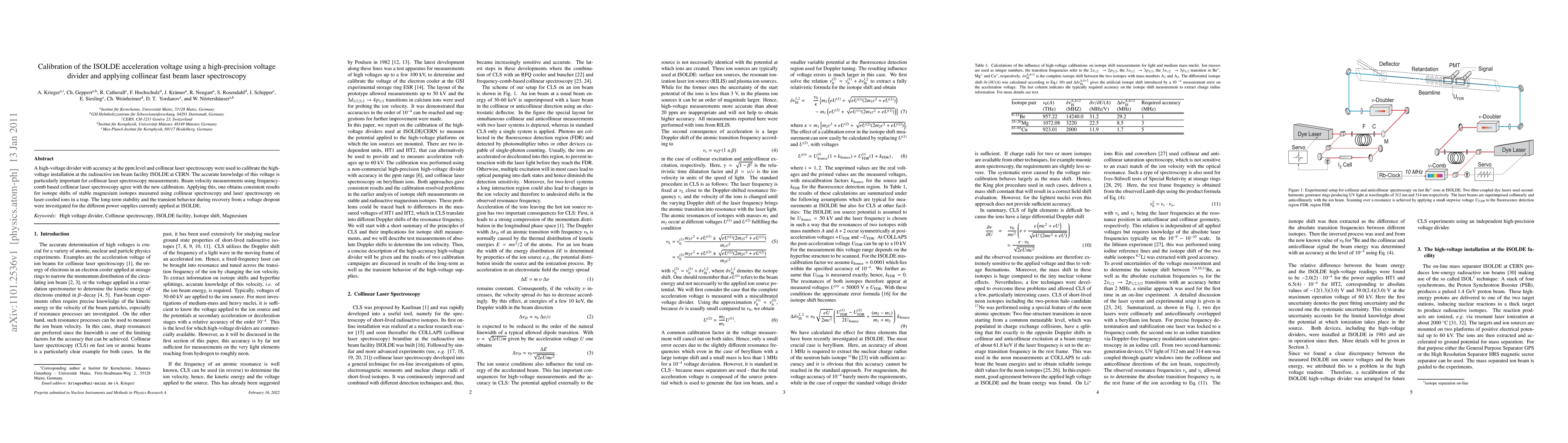 This paper details the calibration of the ISOLDE acceleration voltage using a high-precision voltage divider and collinear laser spectroscopy, achieving ppm-level accuracy. The new calibration aligns beam velocity measurements and provides consistent isotope shift results for magnesium isotopes.
