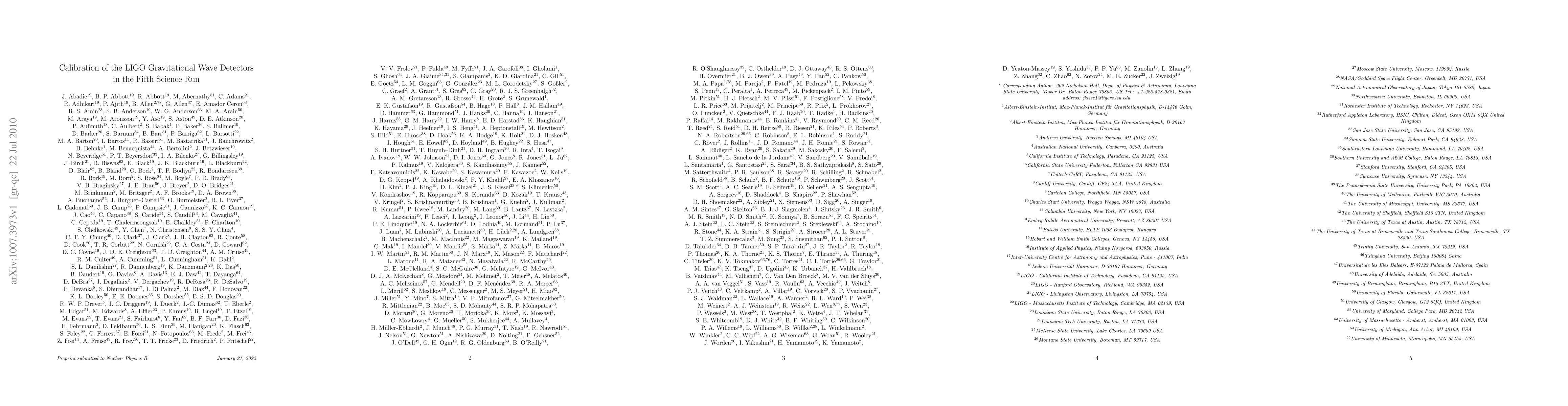 The Laser Interferometer Gravitational Wave Observatory (LIGO) is a network of three detectors built to detect local perturbations in the space-time metric from astrophysical sources. These detectors, two in Hanford, WA and one in Livingston, LA, are power-recycled Fabry-Perot Michelson interferometers. In their fifth science run (S5), between November 2005 and October 2007, these detectors accumulated one year of triple coincident data while operating at their designed sensitivity. In this paper, we describe the calibration of the instruments in the S5 data set, including measurement techniques and uncertainty estimation.