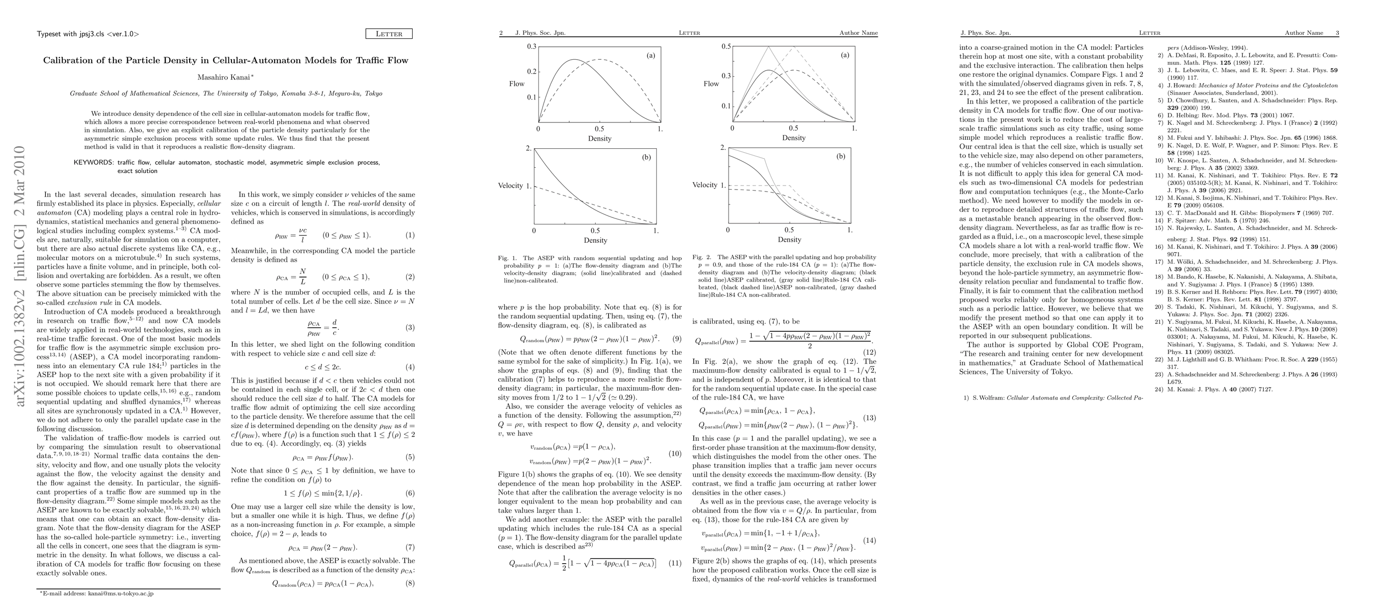 This paper calibrates particle density in cellular-automaton models for traffic flow, introducing density-dependent cell size for better simulation accuracy. It specifically calibrates the asymmetric simple exclusion process, demonstrating the method's validity through a realistic flow-density diagram.