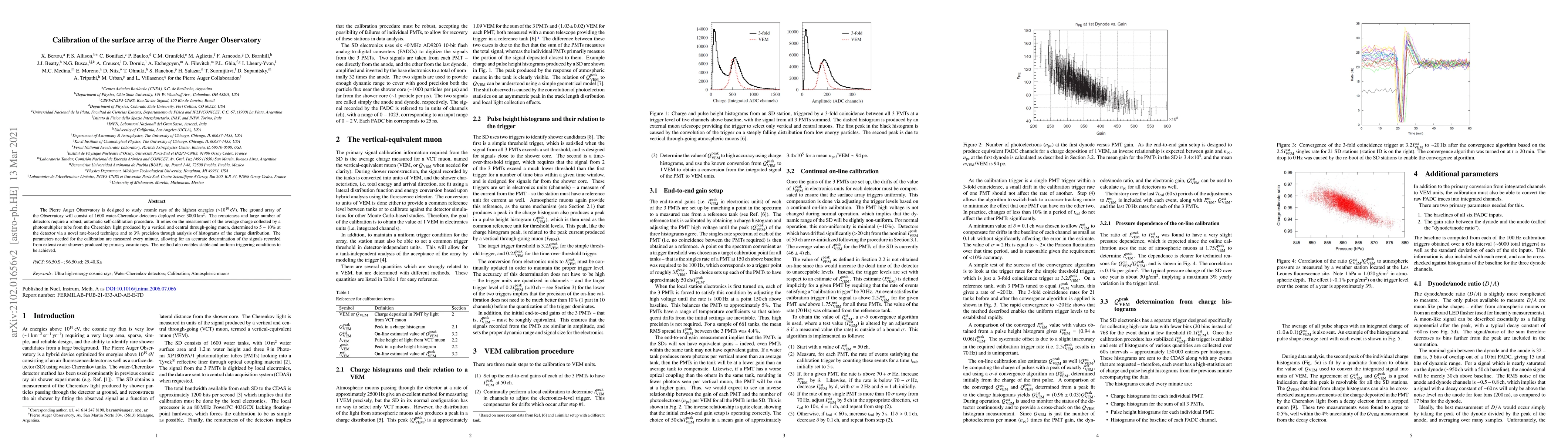 The Pierre Auger Observatory has developed an automatic self-calibration procedure for its ground array of 1600 water Cherenkov detectors. This method uses precise measurements to determine the signals recorded from cosmic rays, enabling stable triggering conditions.